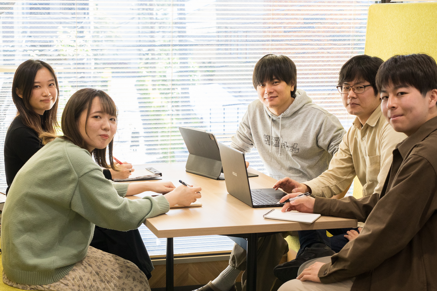 石田くんが所属する横山チーム:左奥から坂内、飯田 右奥から横山、今津、石田