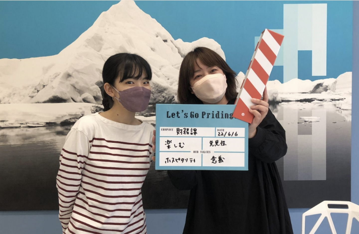 これは2人で即決定した価値観です。私たちコーポレートデザイン課は「バックオフィス」と呼ばれる領域のありとあらゆる業務を担当しています。もちろん好きなことだけが仕事の全てでもありません。ただ、だからこそ、色んなことを面白がって楽しんで取り組むことで、良い環境・良い仕事に結果として繋がると信じています。仕事は真面目にやりますが、チームで顔を合わせる時には楽しく色んな話しをしながら、という雰囲気にも合った言葉かなと思いこの言葉になりました。