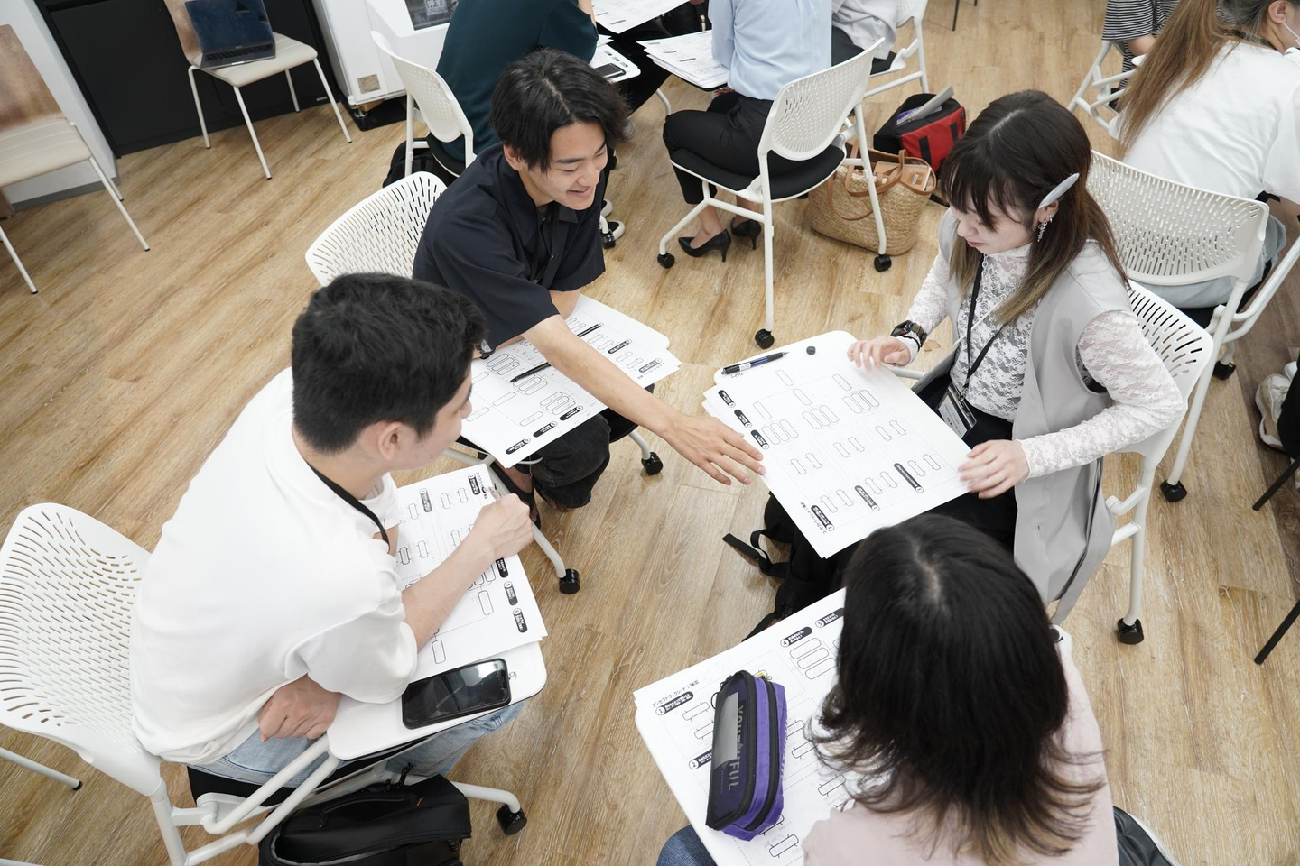 (登壇者を含む各企業の先輩社員が学生へのフォローに入りながら、ワークを進めていきました)