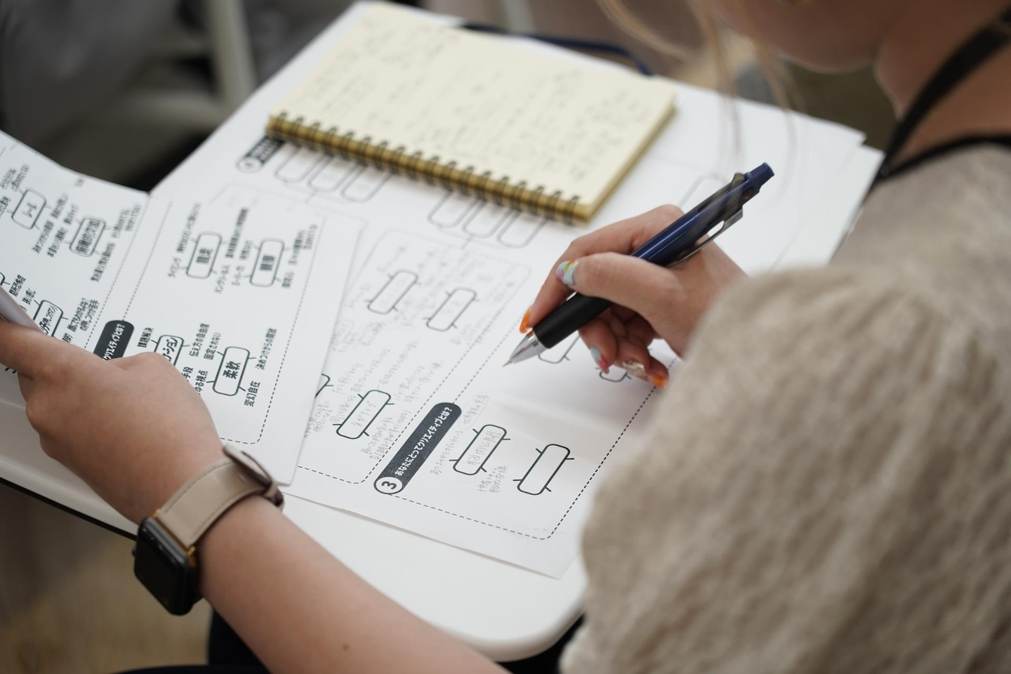 自分のコンセプトやビジョンを納得のいく言葉に落とし込むことに苦戦しながらも、同じような悩みを抱える周りの学生の方との対話を交えて進めることで、クリエイティブに働くイメージが湧いてきた様子でした!