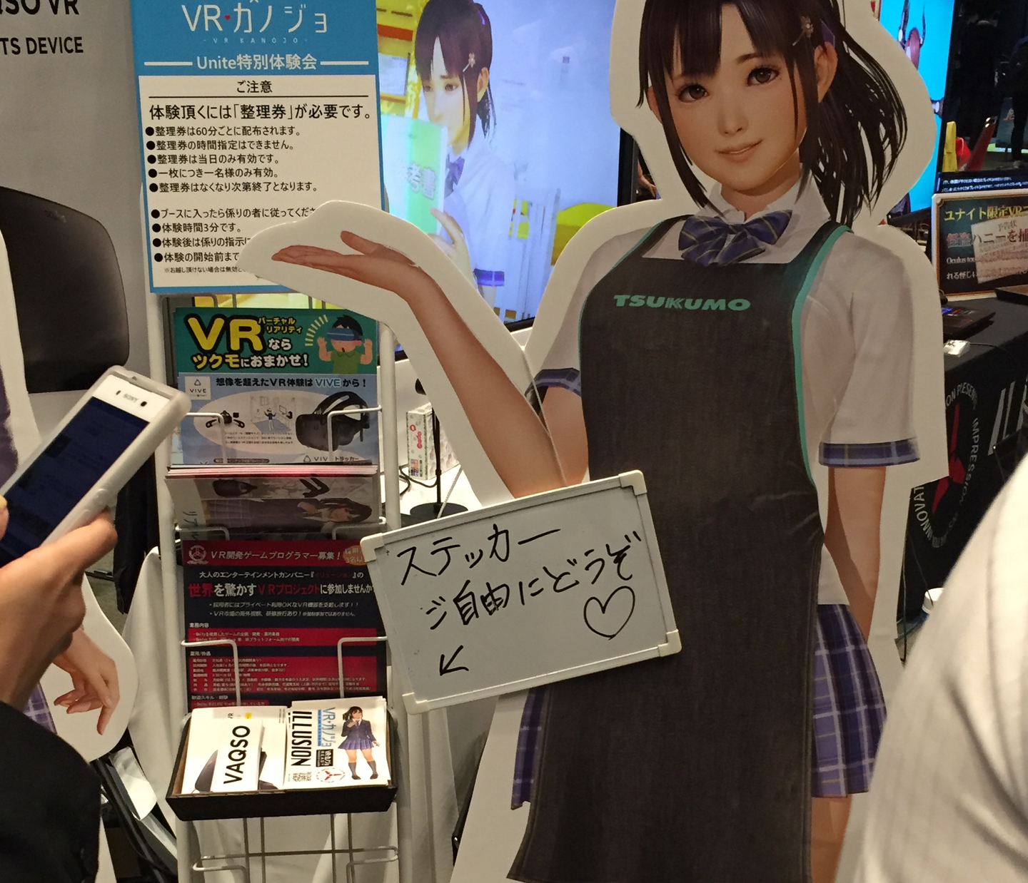 ブースエリアの中でも群を抜いて話題となったのがVRカノジョとVAQSO VRのコラボブースです。VAQSO開発の嗅覚刺激型VRデバイス「VAQSO VR」によってVR空間にいるカノジョの匂いを嗅ぐことができます。