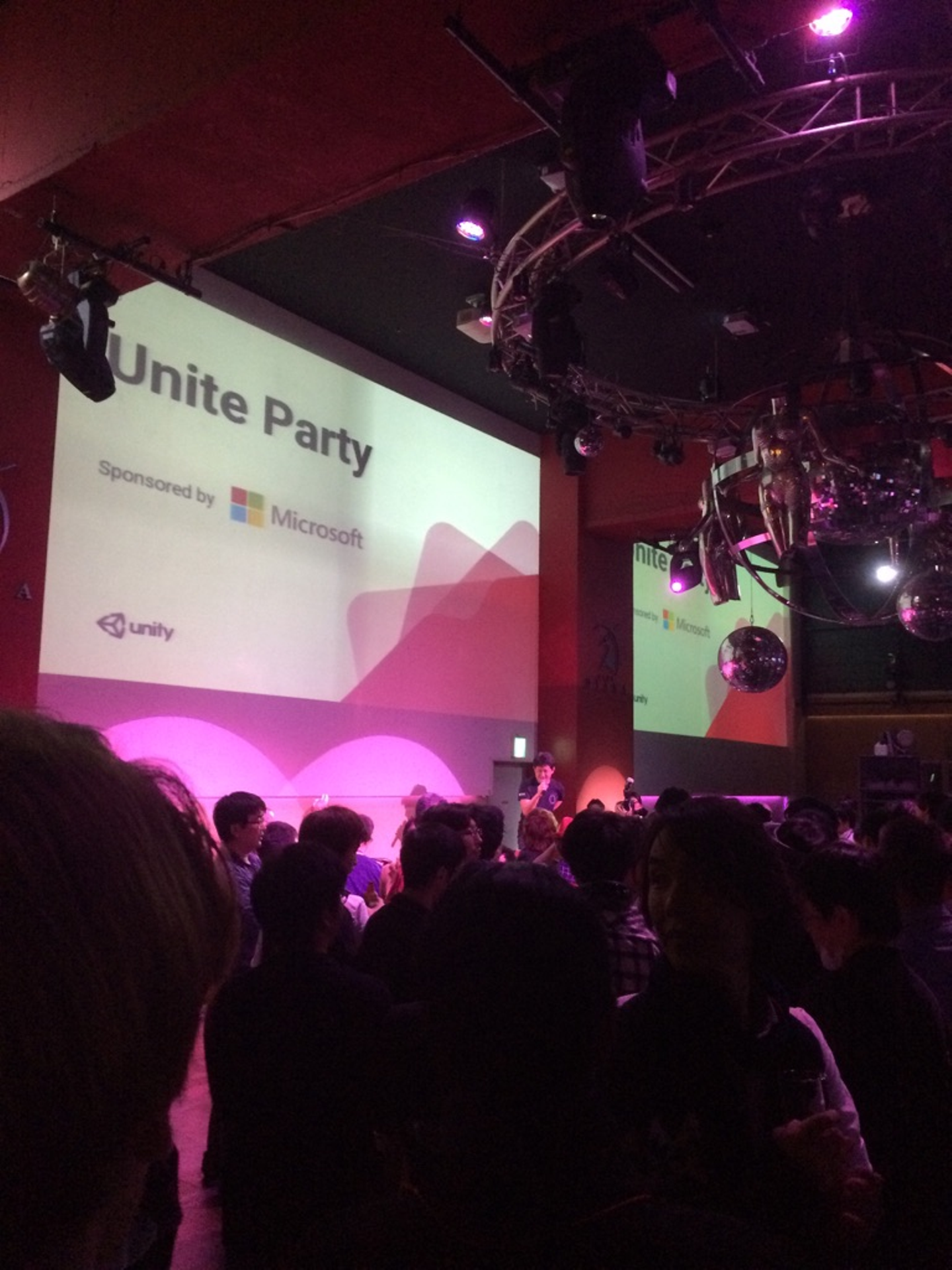 1日目の夜は有楽町のclub dianaにてUnitePartyが開催され、会場は多くの人で溢れかえっていました。初日に講演していたということもあり少しだけ人気者になれました。そのため様々なUnityに関わる方が声をかけてくださいました。Unityエンジニアの方とは開発におけるTipsなどの情報共有ができたのでとても有益な時間となりました。