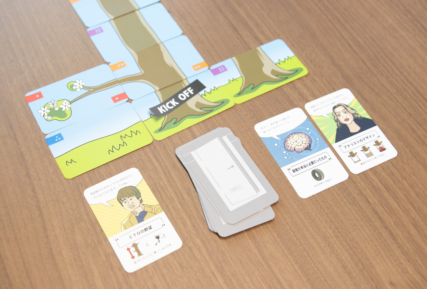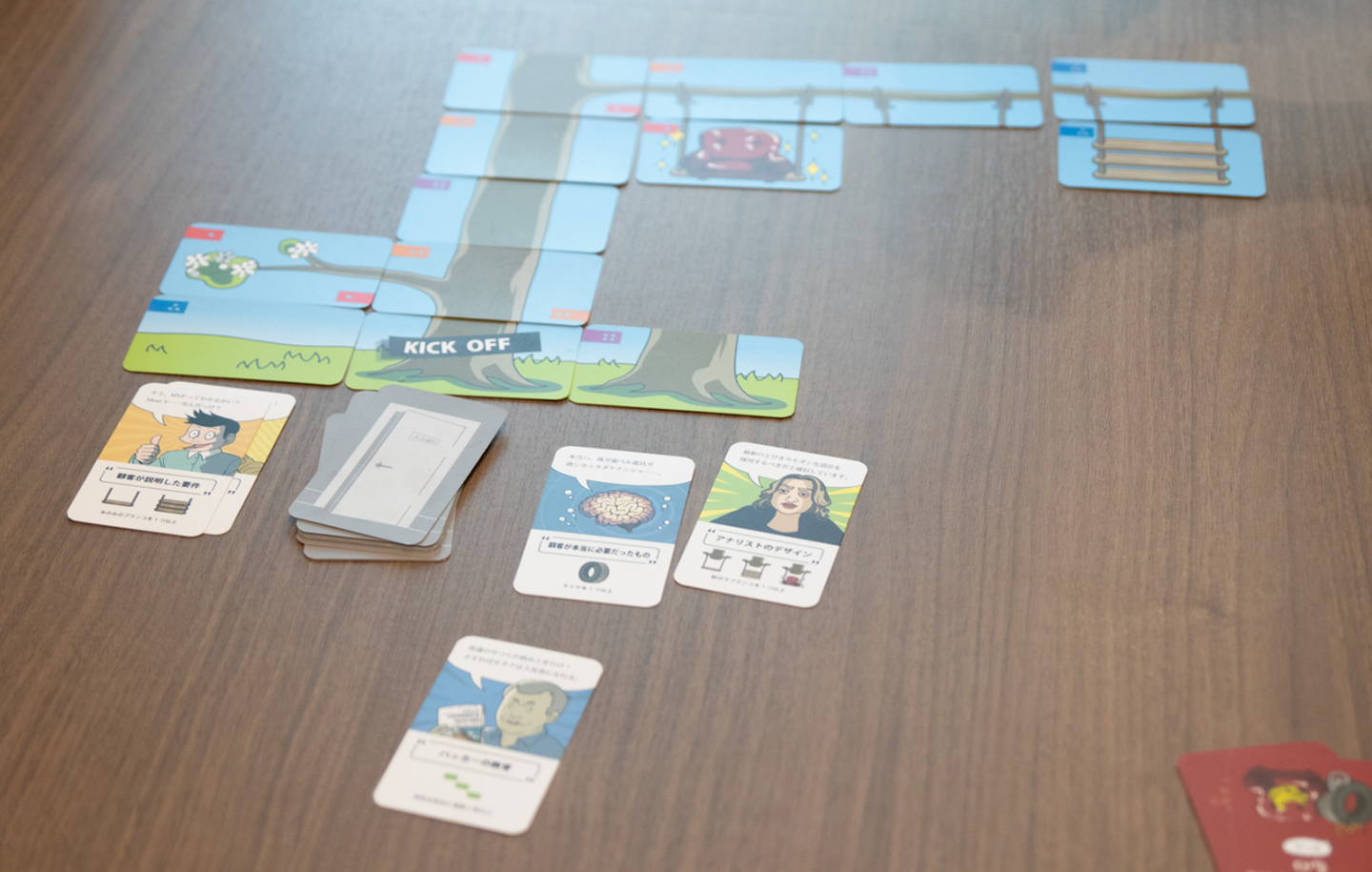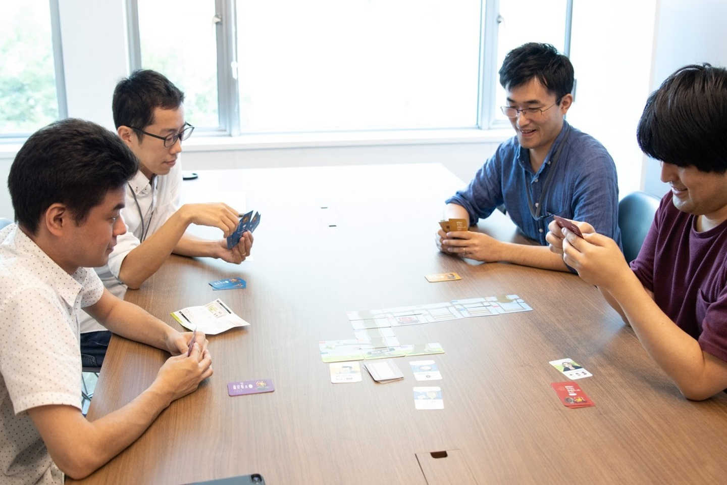 このように仕事に真摯に向き合うメンバーが多いので飲み会の席でも自然と仕事の話が出てくることがあるんですが、先日飲み会の中でふと「顧客が本当に必要だったもの」についての話が出て、「そういえば、(開発部長)三上さんそのゲームありましたよね?久々にやりたいなぁ」という声、それを聞いた他メンバーから「僕もやってみたいです!」という声が上がり、仕事に直結する内容だし仕事の時間にやってみよう!ということで、今回のボードゲーム会が開催される運びとなりました。