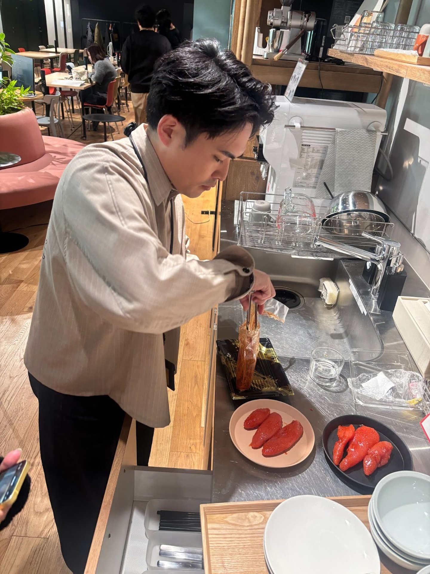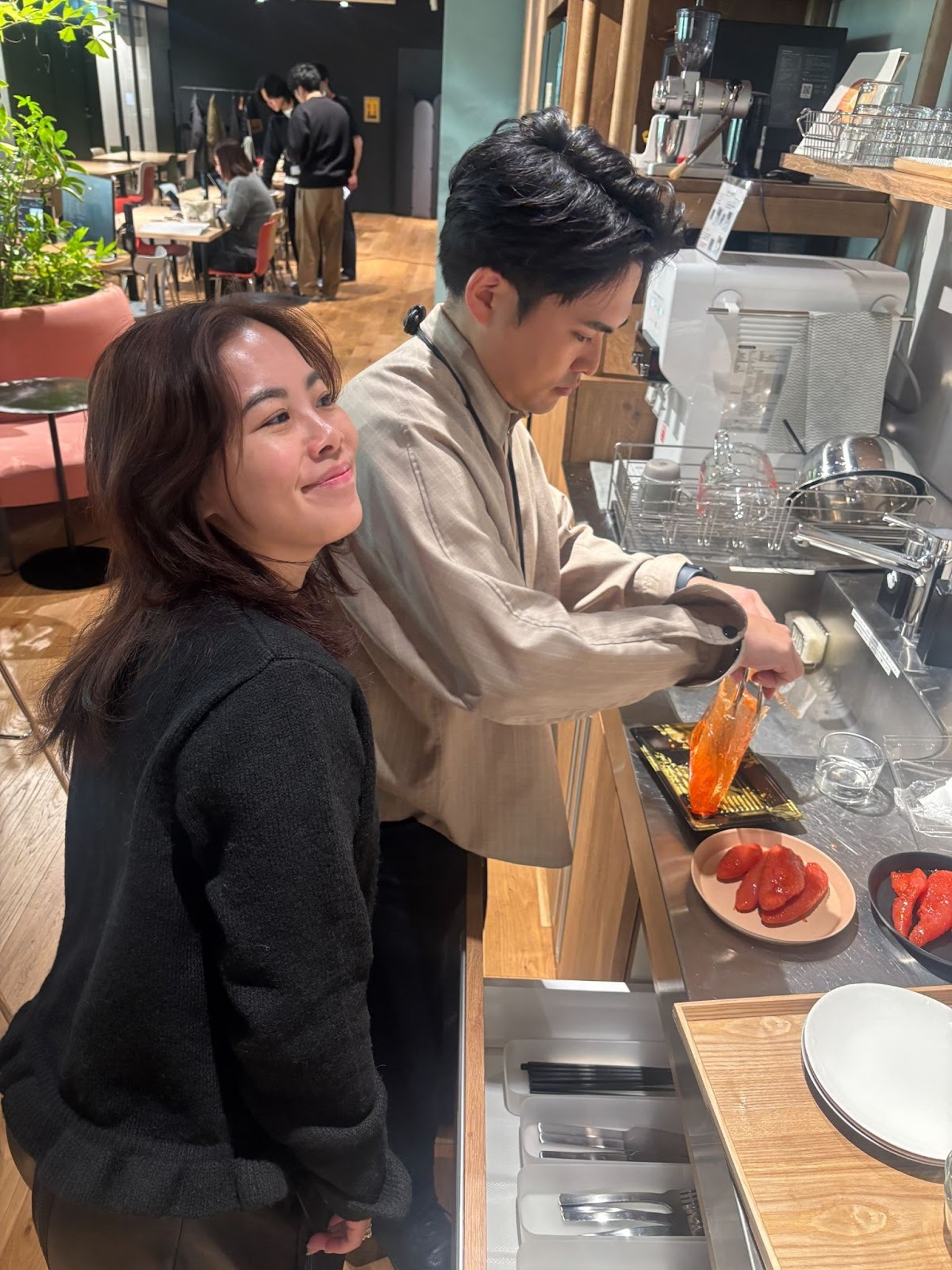 隣では、なぜか自然に手伝い始める弊社代表・マイさん(笑)