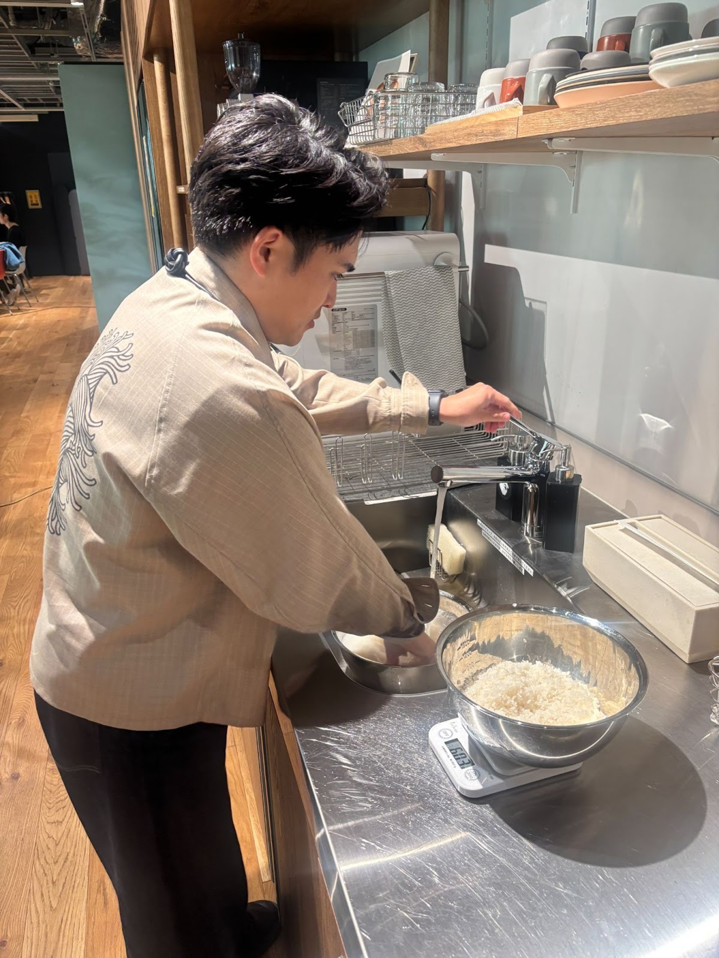 手際よく、丁寧にお米を研いで、準備万端。