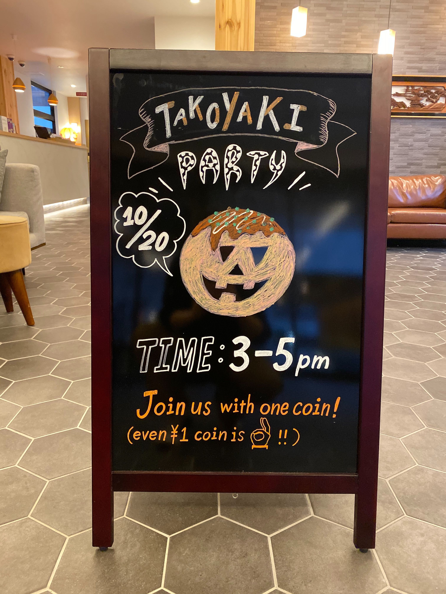 不定期で開催しているたこ焼きイベント。家でのたこやきパーティーのようにやったら楽しいのでは?ということで実際にイベントを開催。初めてのたこやき体験に海外ゲストは困惑するもの楽しい!と大好評。絵を描くのが得意なスタッフが看板作成を担当。