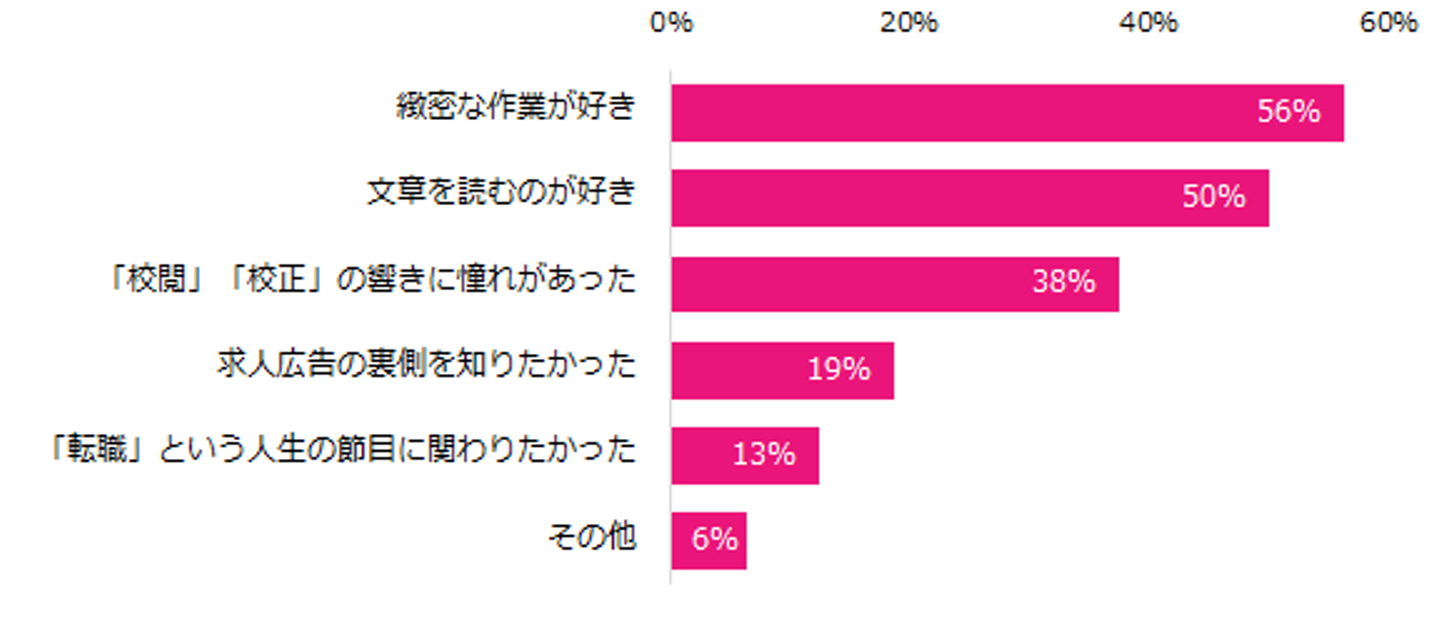 アパレルの販売員、リラクゼーションセラピスト、融資事務、DTPオペレーター、ナレーター(?!)、不動産サイトの「間取り図」と「内観画像・外観画像」の相違や規定違反を指摘する業務、コピーライター など。 一回オフィスワークをやってみたかった、という声も多数見受けられます。当然ですが、校閲・校正は未経験!というメンバーばかり。未知の専門知識を持っている人が多いのも、特徴の1つ。話を聞いてみたい!