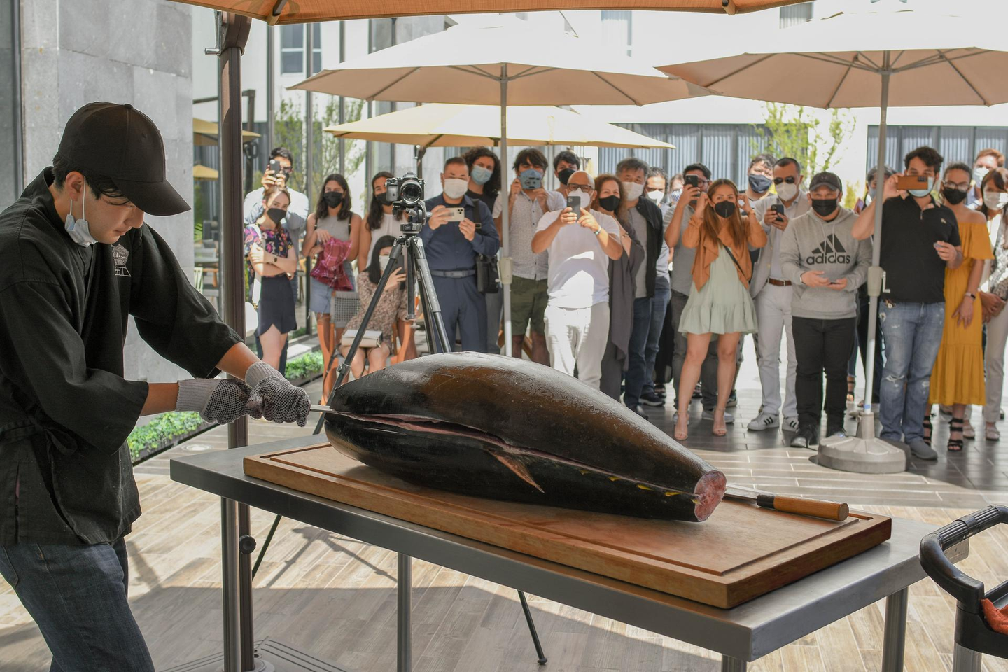 メキシコのレストラン在籍中に小川さんが実施していた鮪の解体ショー