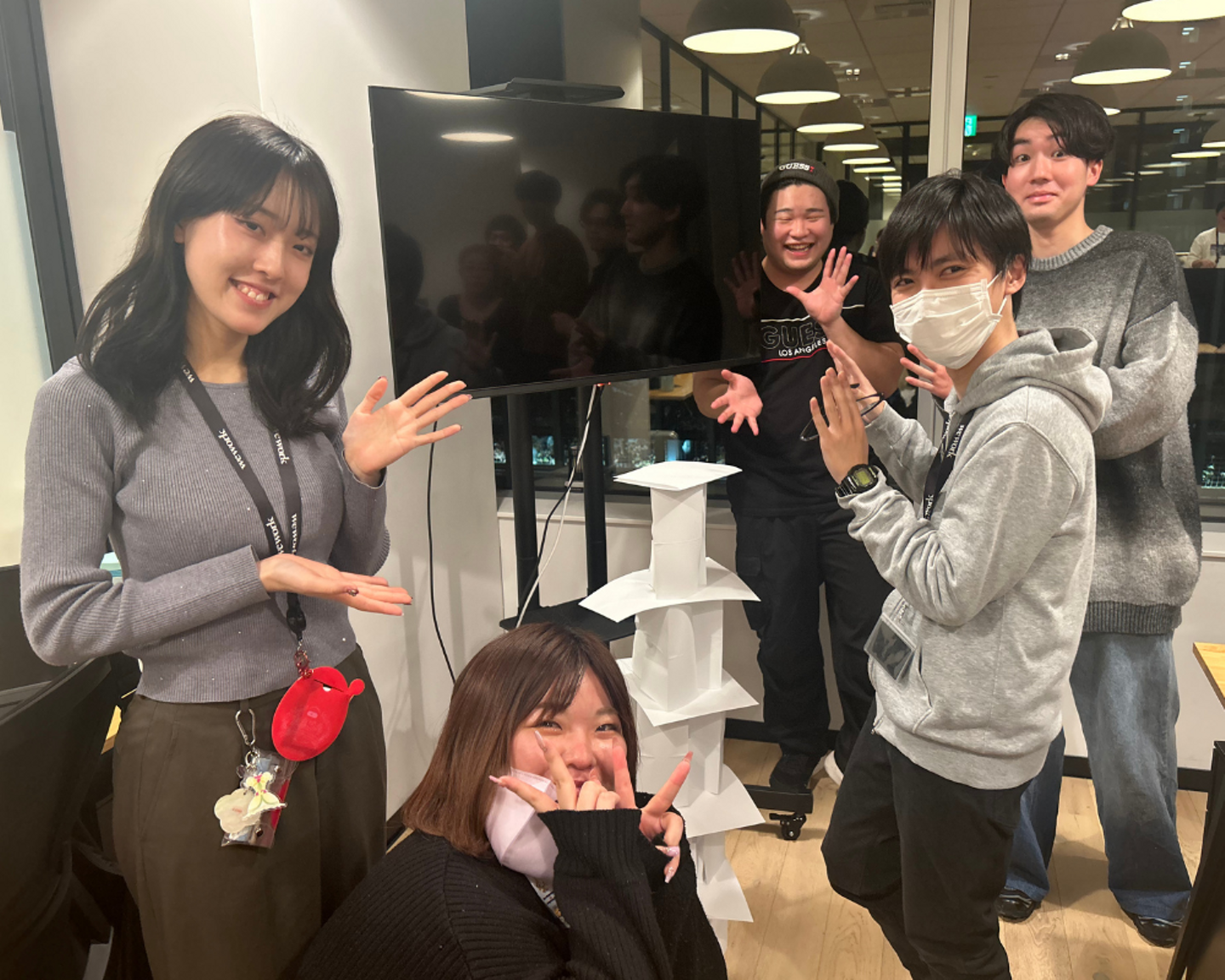 今回行ったゲームは、社員研修などでおなじみの ”ペーパータワー” と新入社員にスポットライトを当てた ”◯✗クイズ” を4チームに分かれて、チーム戦で行いました🔥