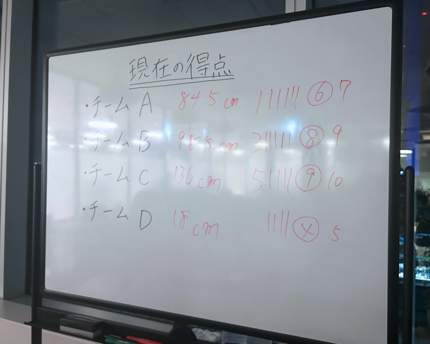 -最終ボーナス問題前の各チームの得点-