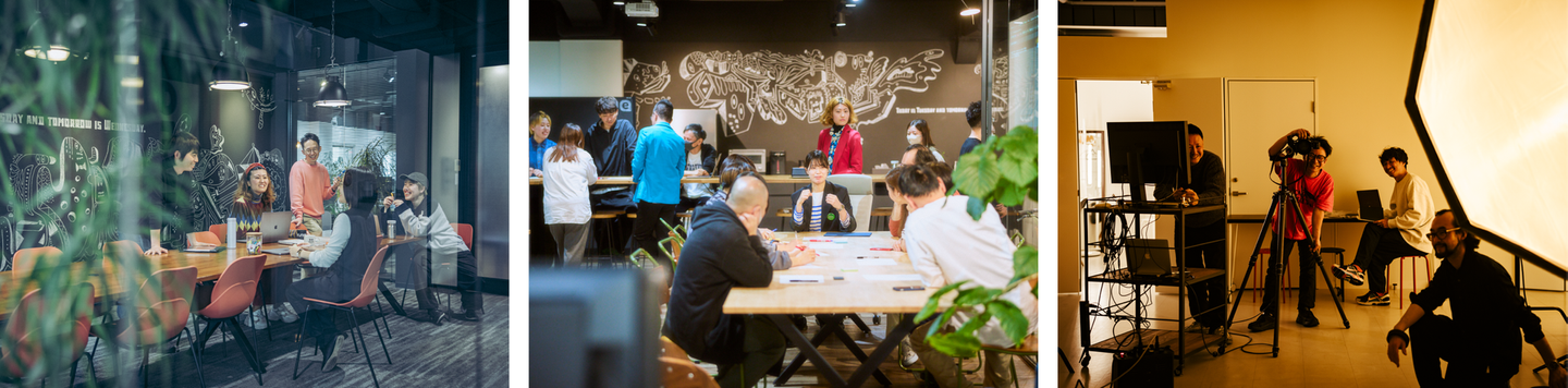 遊び心とクリエイティブにあふれた空間の中で、メンバーそれぞれが自由な発想を持ち寄りながら仕事に取り組んでいます。
