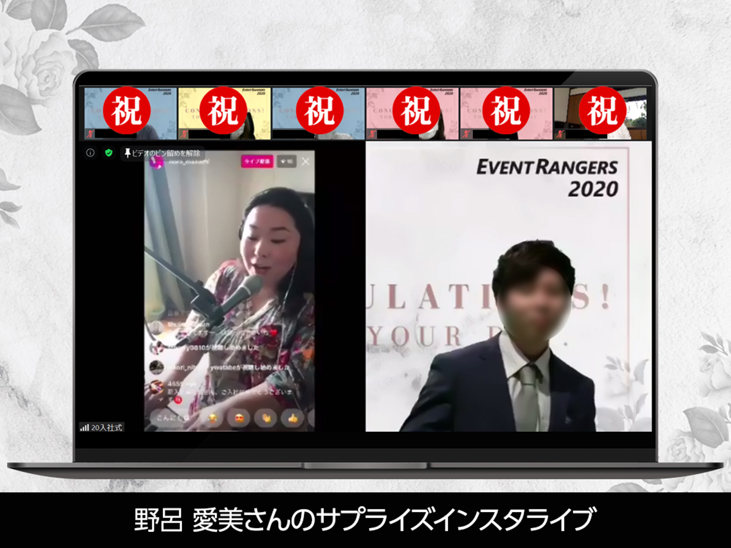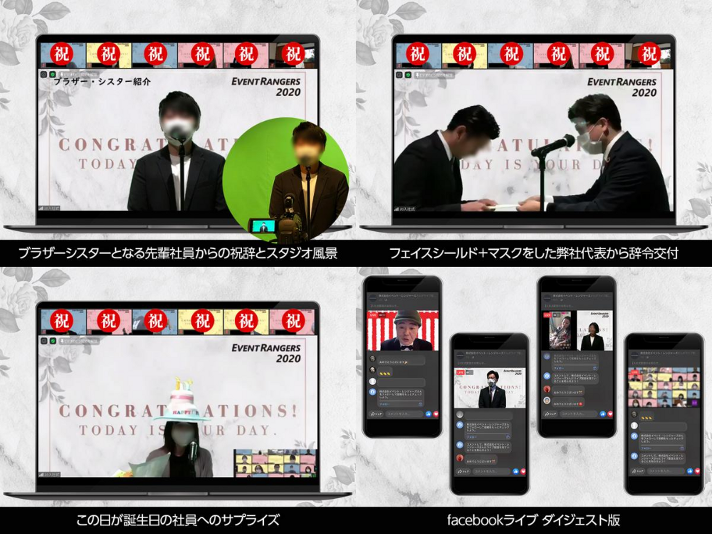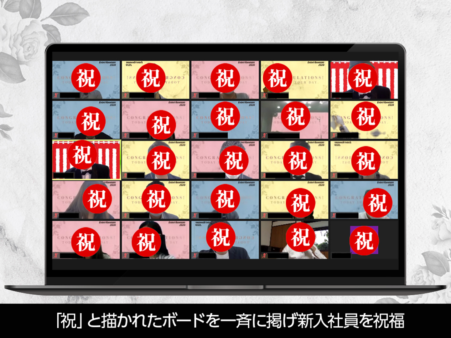 ですがオンラインでの開催となるとサプライズがバレる心配はほとんどいらず、普段より大掛かりなサプライズも可能になります。社員全員でのサプライズ、ゲストを呼んでのサプライズ、ぜひみなさんもやってみてください!入社式ができていない企業様にもおすすめです!
