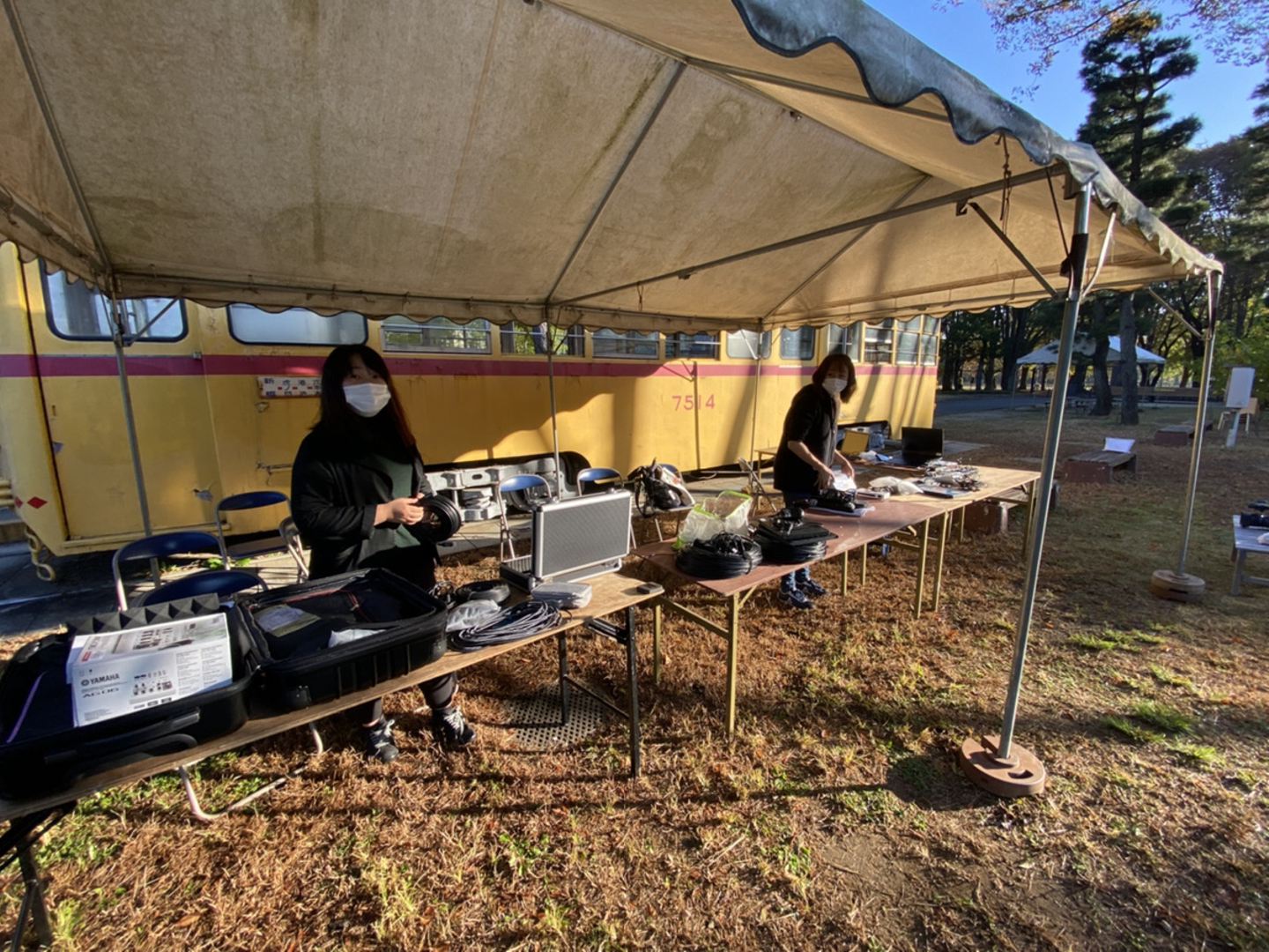 機材のセッティング、チェックを神奈川支店の営業、東京支店のCC(カルチャーコーディネーター)が。