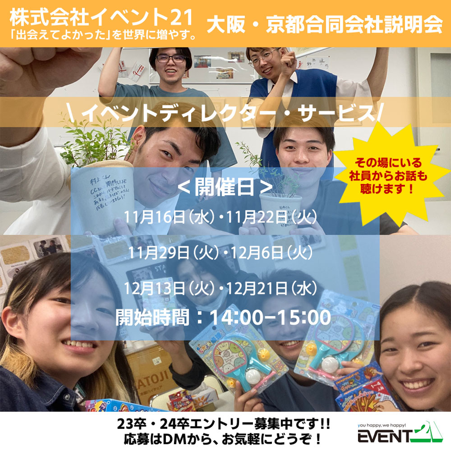 23卒24卒対象のイベント21会社説明会を随時開催しています!