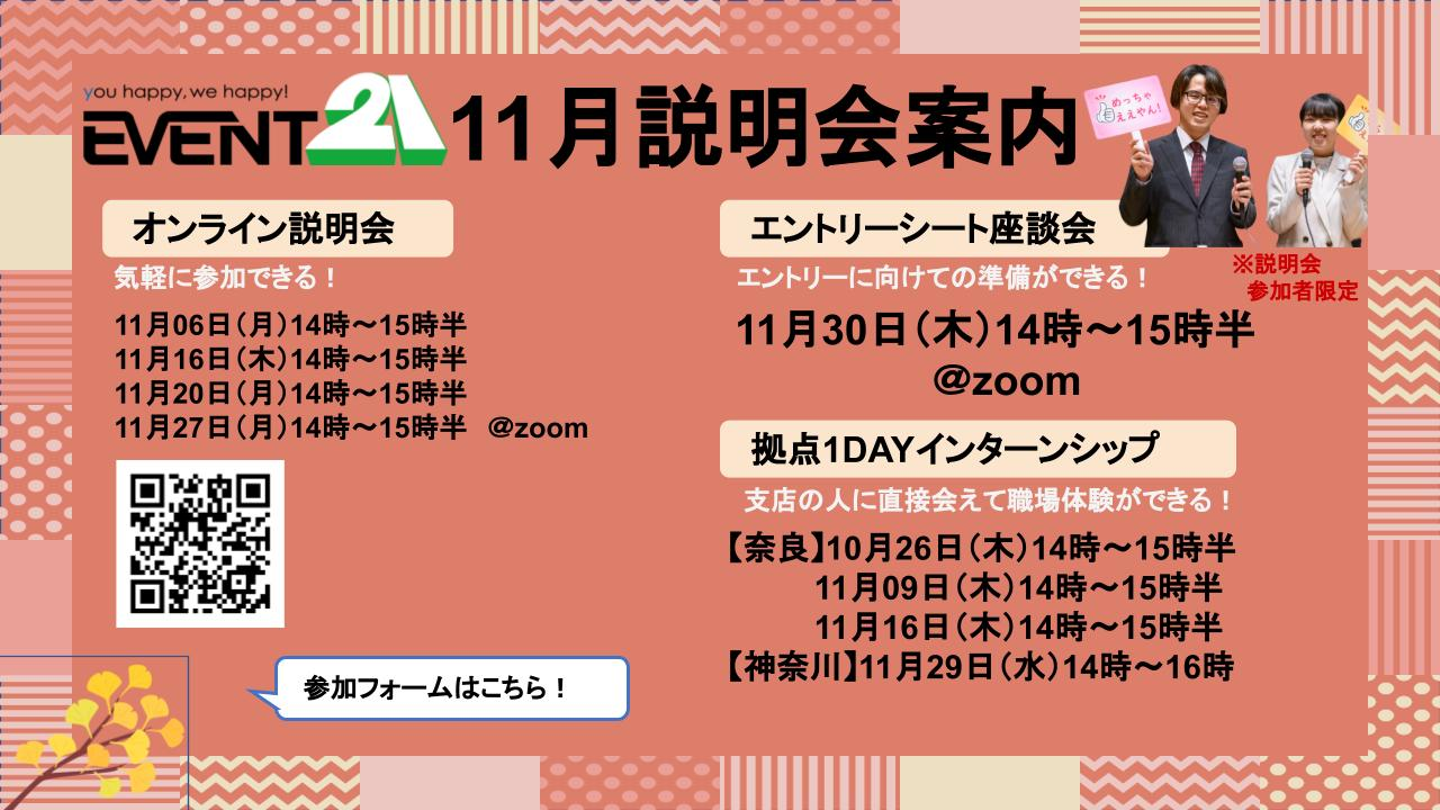 イベント21では秋採用も継続して行っていますよ(^^♪