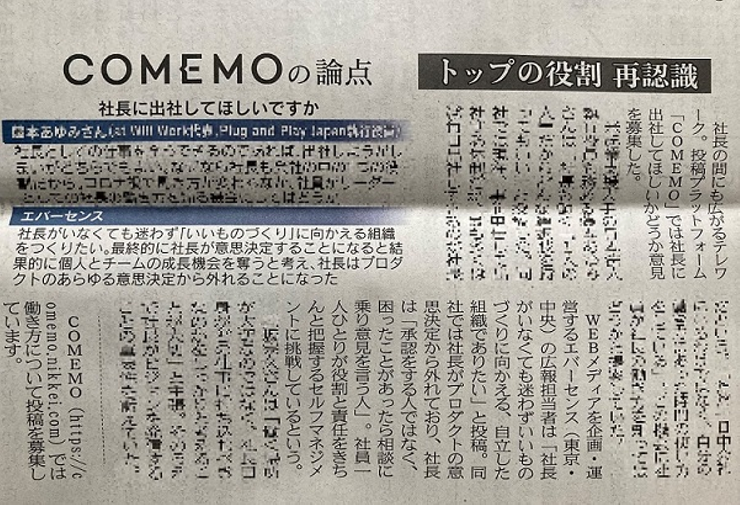 本日2020年10月27日(火)の日本経済新聞にて、noteで発信したエバーセンスの働き方に関する意見が紹介されました!