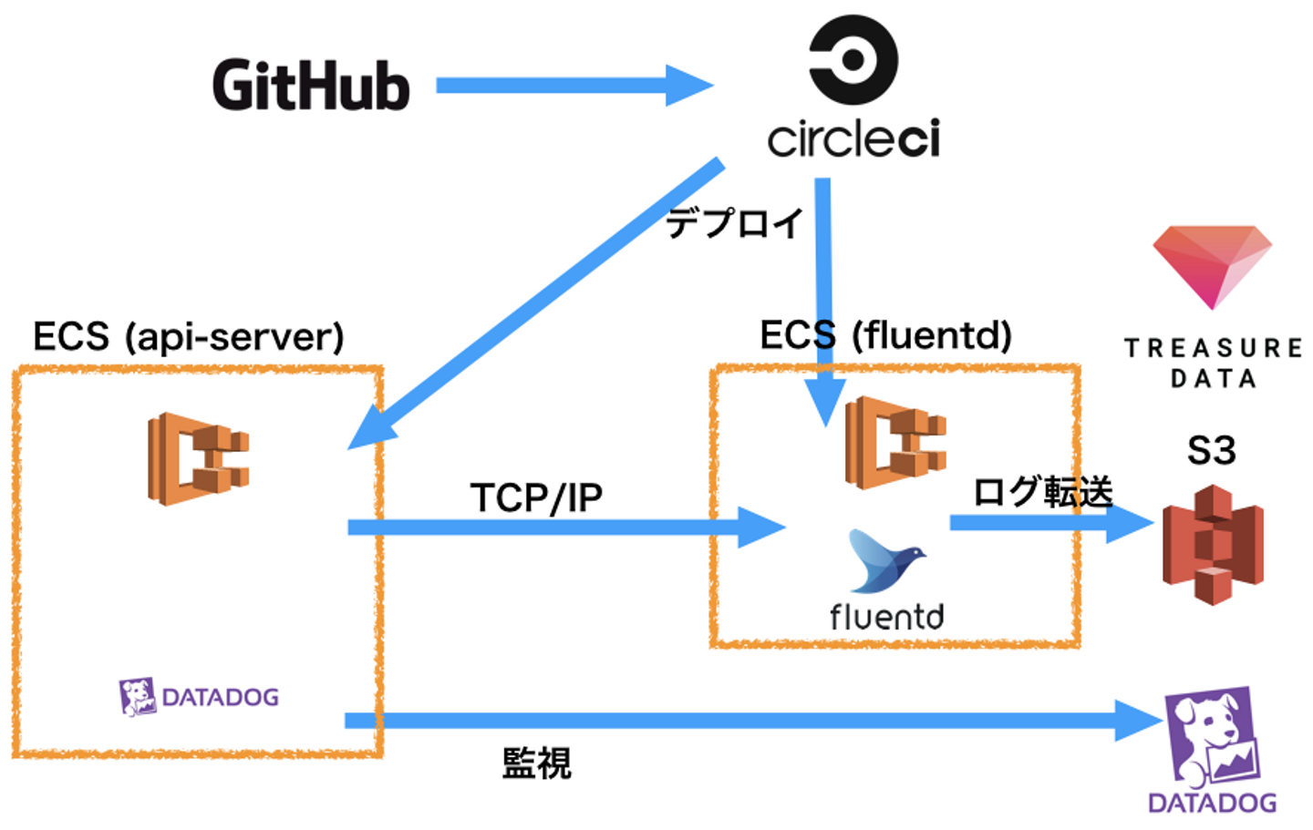 後者に関しては、開発者用api-serverは開発者個人が一時的に確認する目的で起動するため、ログはfluentdに転送されるより、コンテナ内にファイルとして出力されているほうが確認作業が容易になるためこうしています。
