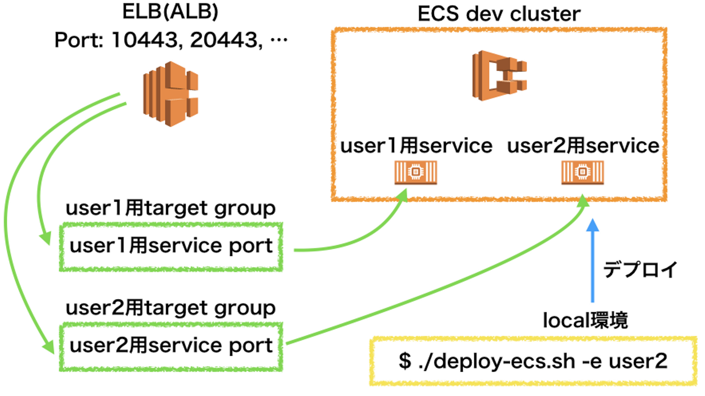 ECSでいったん開発者用サービス定義をしておけば、あとは通常と同じく、デプロイスクリプトを実行するだけでデプロイが完了します。