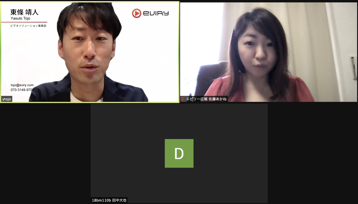 東條 靖人|1985年4月生まれ。千葉県出身。現在はエビリーのビデオソリューション事業部のセールス部部長を担当。組織全体での成果を上げるため戦略を立てたり、軌道修正などをし、部を牽引している。エビリー入社前は、人材系の会社での営業や、情報誌の営業、商社での企画など幅広く経験。学生時代は、高校卒業後、青山学院大学へ進学し、オールラウンドサークル代表などを務めていた。プライベートでは愛猫家・愛妻家の側面も。
