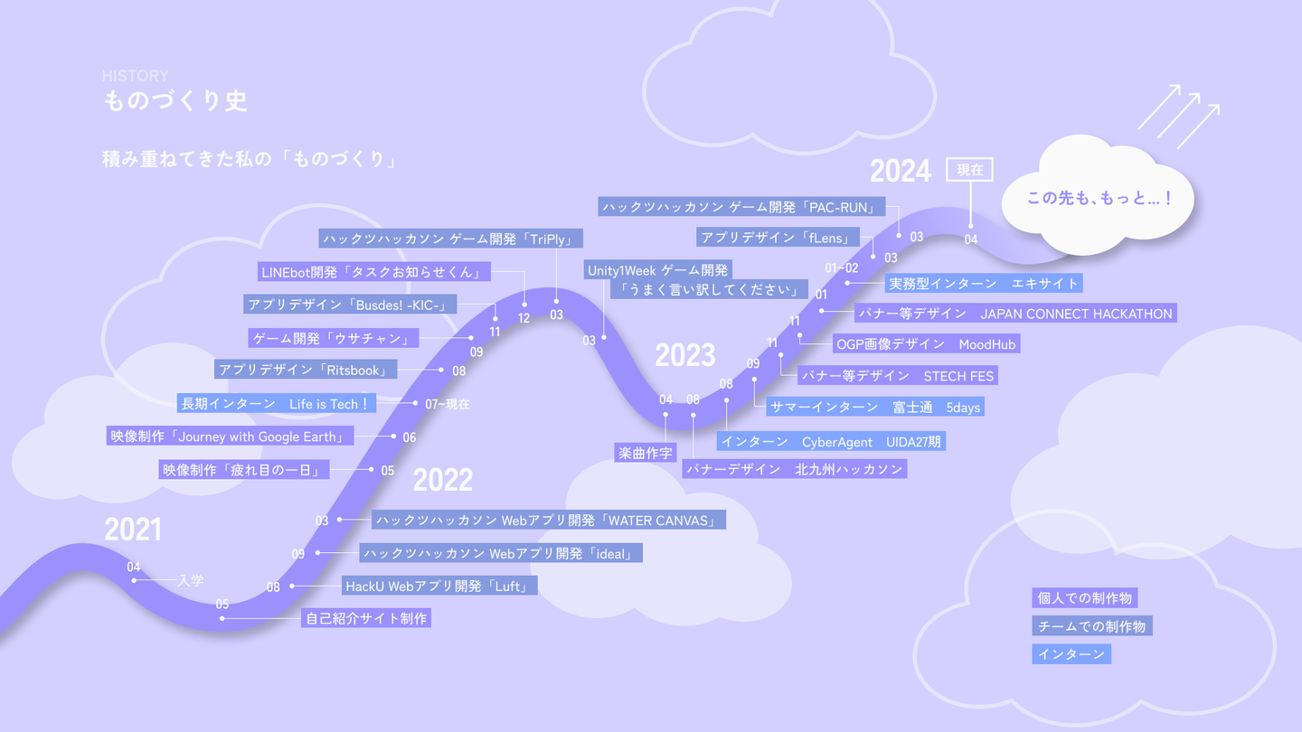 ハッカソンに参加する中で、「技術力は高いのにデザインがイマイチでプロダクトの良さがうまく伝わらないのがもったいない!」と感じる場面がよくあり、デザインに興味があった私はチーム内で積極的にビジュアルやUIまわりをを担当するようになりました。デザイナーという役割をたくさん引き受けていたこの頃から、「私はデザイナーになるのかも?」とふわふわ想像していたような気がします。