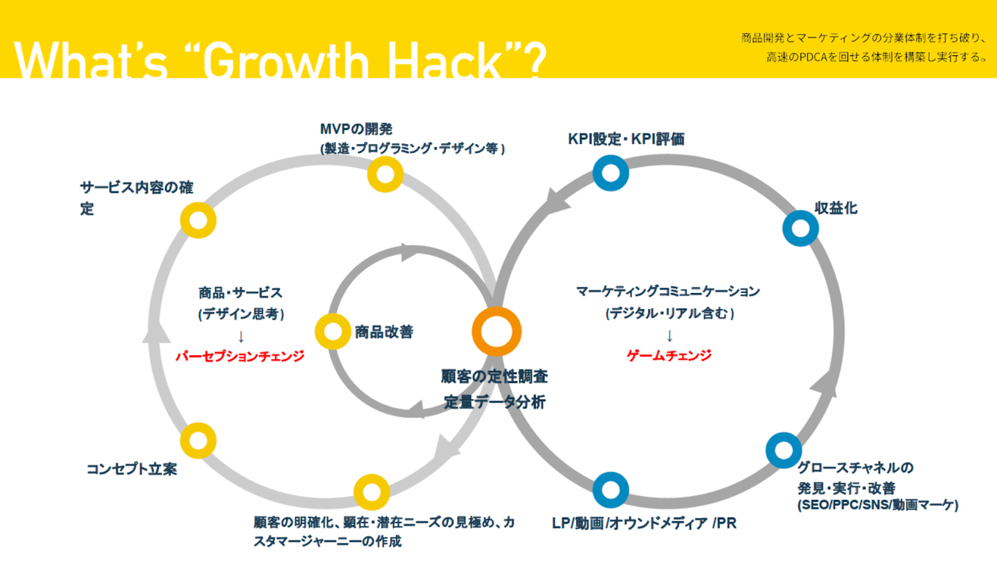 まず、会社全体としての商材は「Growth Hack」になります。