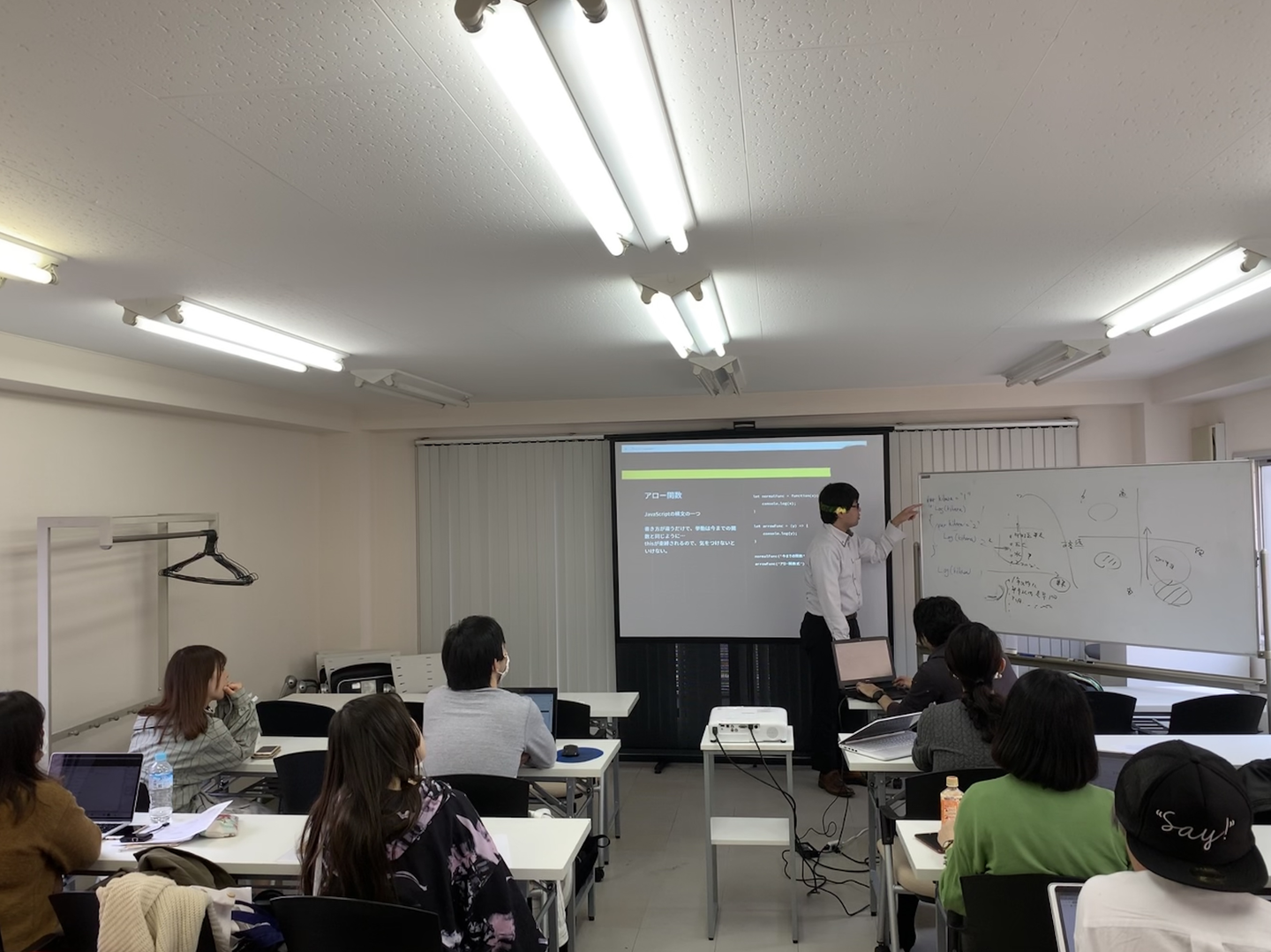 スキルアップのため、仕事をすべて休んで1日みっちりと勉強会をします。経理や法務もプログラムの勉強が必須です。職種に関係なく、今はやってる技術や現場で使われているフレームワークなどの技術合宿を行います。