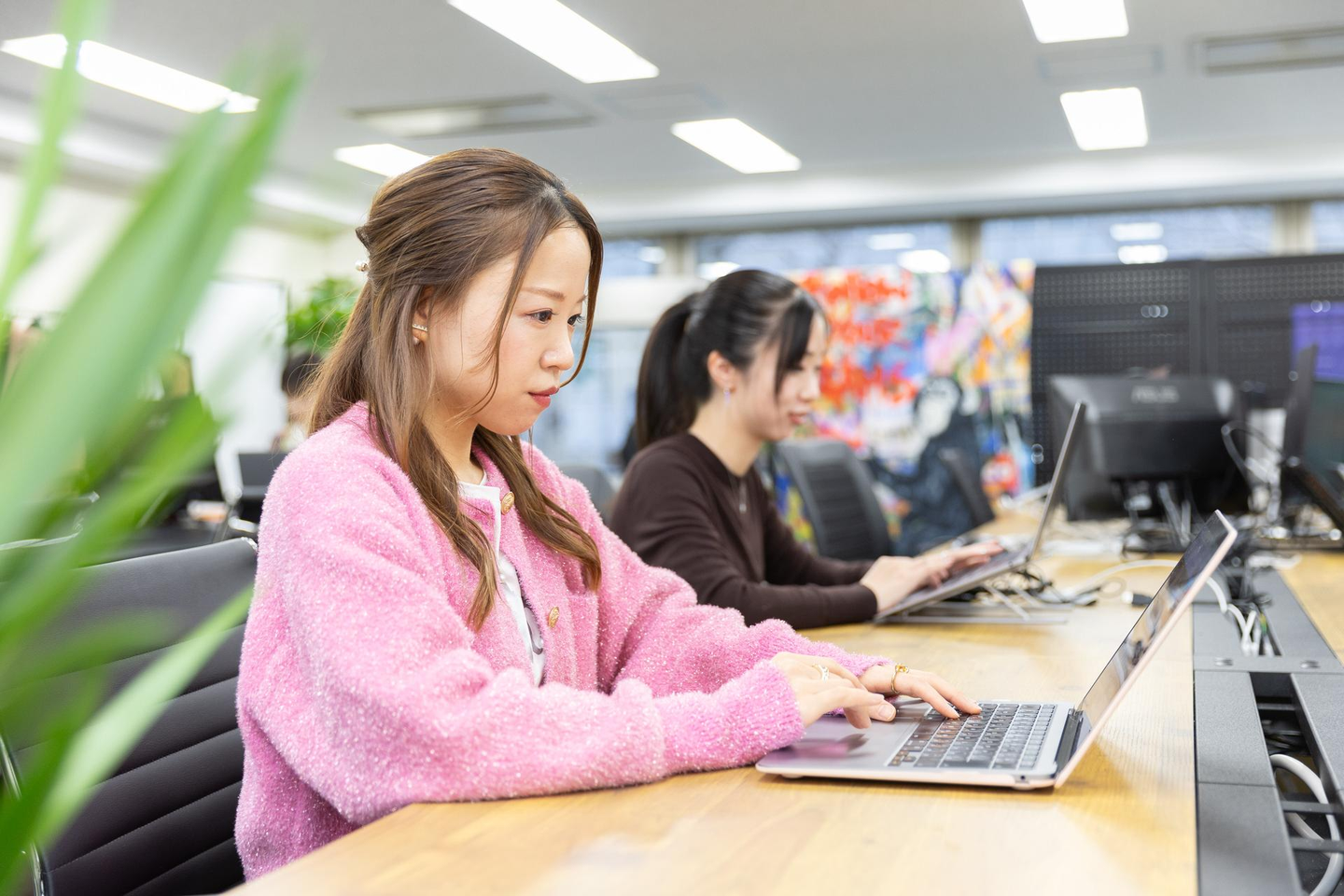 高橋「緑があるのって爽やかでいいですよね。私は自宅には全く緑を置かないタイプなので、このエントランスを見ると『会社にきた!』とスイッチが入る気がします。」