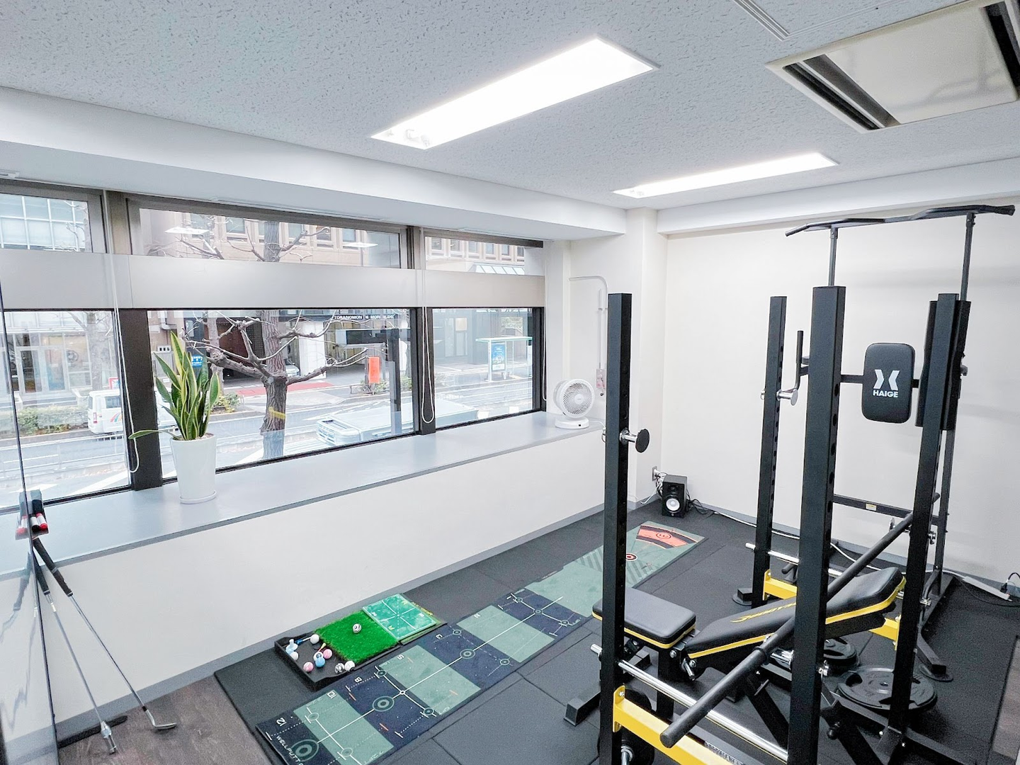 みなさんが移転前から楽しみにしていたというのがフィットネススペースです。通りに面した窓からは季節によって変わる街路樹を楽しめる広々としたリフレッシュ空間となっています。