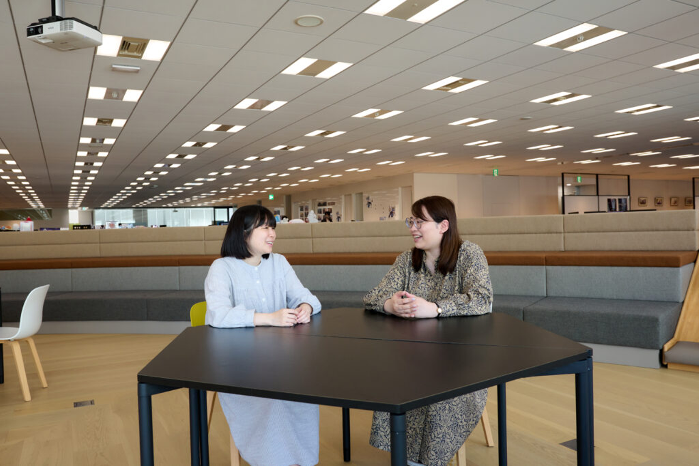 F 「そうですね。個人イラストレーターとして仕事を受けると、指示書を受け取ってその通りに描いて納品して、という感じなので、あまり人と関わることがないんですよね。でも会社に入ると自分がイラストを描いたあとの工程が見えたり、プロジェクトに関わる皆さんの熱意が伝わってきたり、Aさんのように発注側の方と密にコミュニケーションをとったりしている様子を感じたりできます。