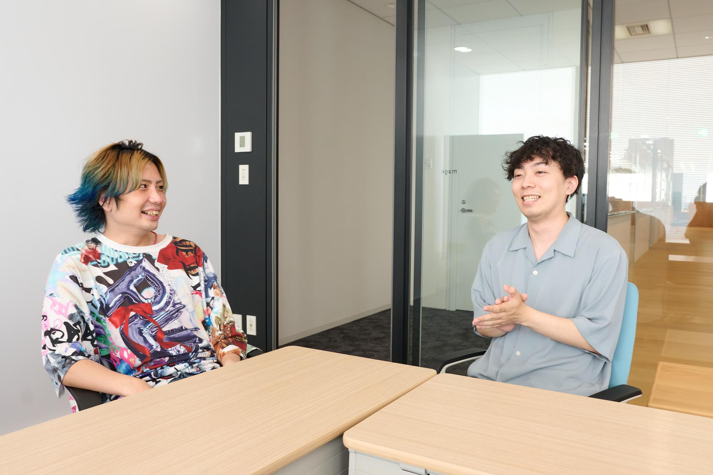 2022年に新卒入社し、現在は運用タイトルの設計プランナーとして奮闘中のTと、Tのインストラクター(育成担当者)として入社からの1年間をサポートした先輩社員のO。