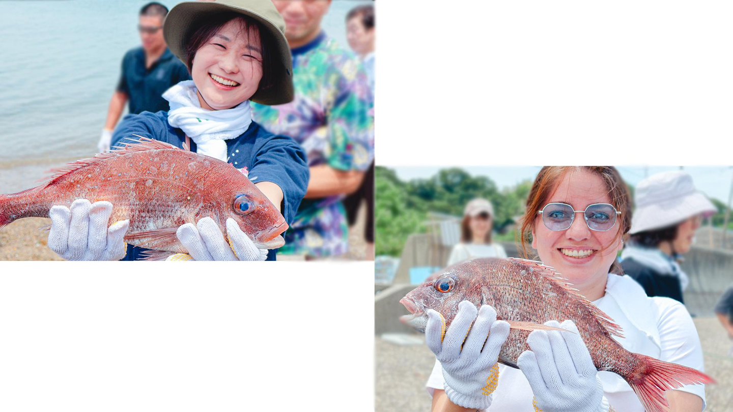 期待して網を引き揚げると、鯛をはじめ、たくさんの魚が入っていました!!