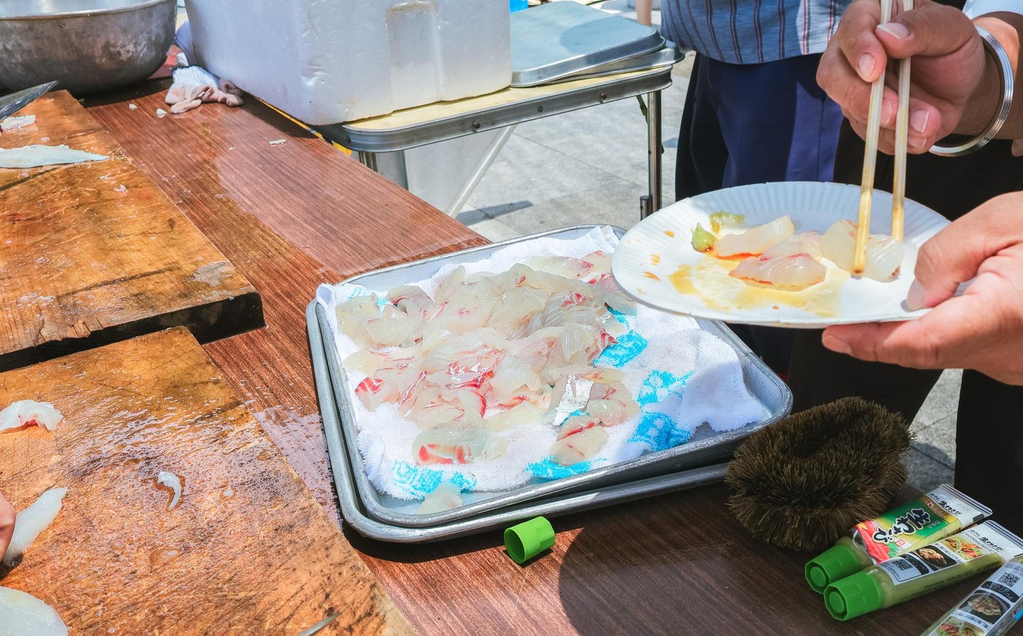 この魚をそのまま漁師さんが捌いてくださり、まずは獲れたて新鮮なお刺身をいただきました!