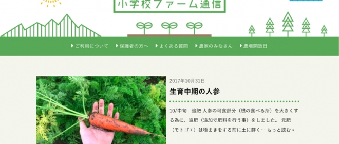 山梨県北杜市の井上農場内に2017年7月、目黒区立小学校の『小学校ファーム』を設立。同年10月より、目黒区立小学校の専用WEBサービス『小学校ファーム通信』の提供を開始しました。『小学校ファーム』は、近隣に広い農地のない東京都内の小学校が、FARMFESを利用して、郊外の農園に学校の名前をつけて、擬似的に農地を所有できるサービスです。学校ごとにFARMFESが特設ウェブページを提供。児童は、特設ページを通じて、農作物が育つ様子を観察したり、コメント機能から、農場を管理する農家とコミュニケーションをとることができます。また、リアルな体験の場として、農場に行くこともできます。農場では毎月一回...