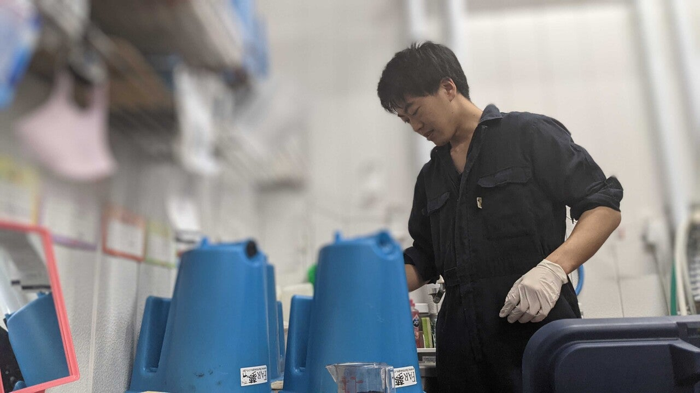 仔牛用のミルクを作る三澤さん