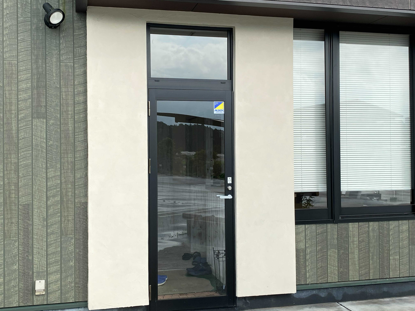 社員用の出入り口は、正面から少し離れた場所にあるこの小さい扉。