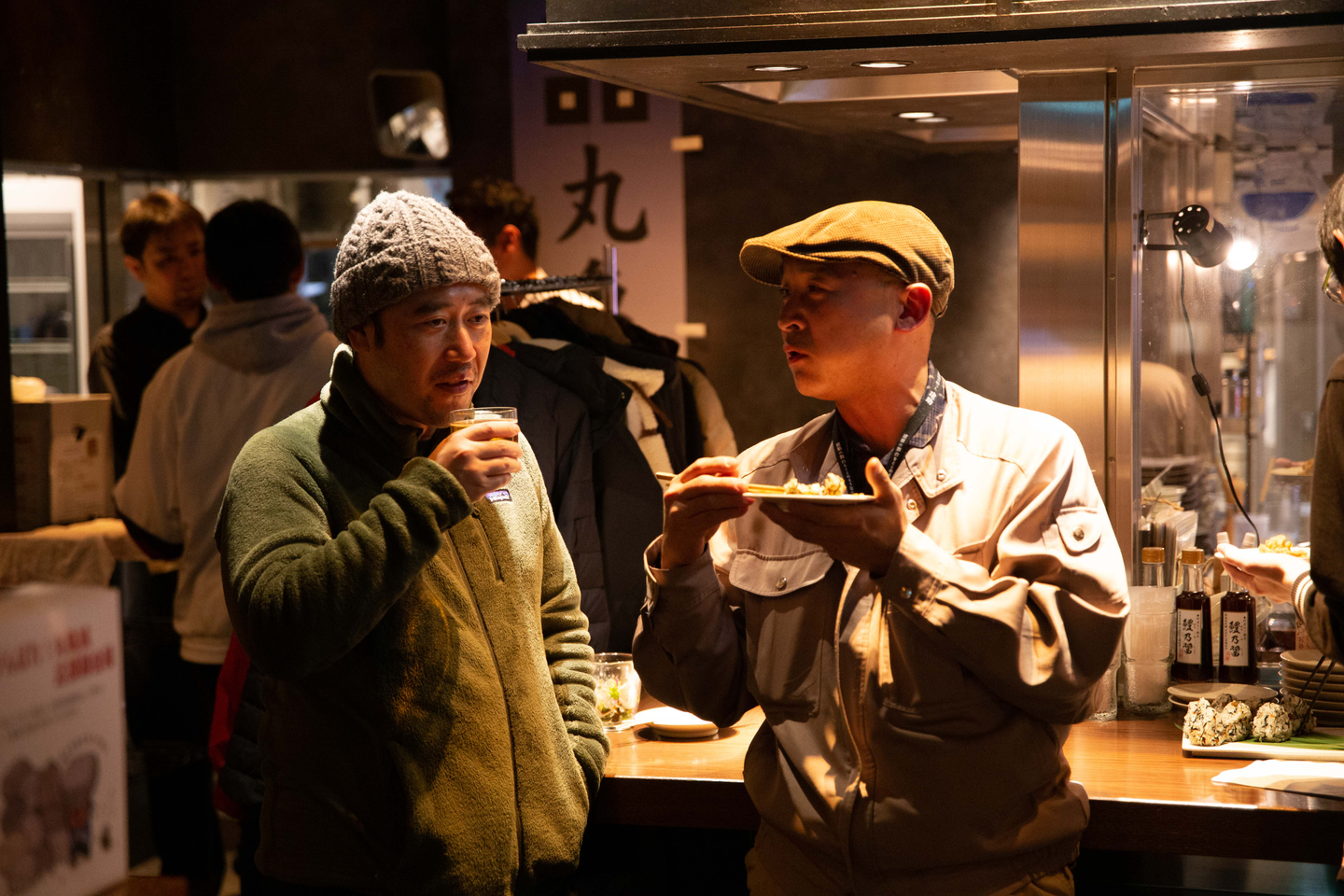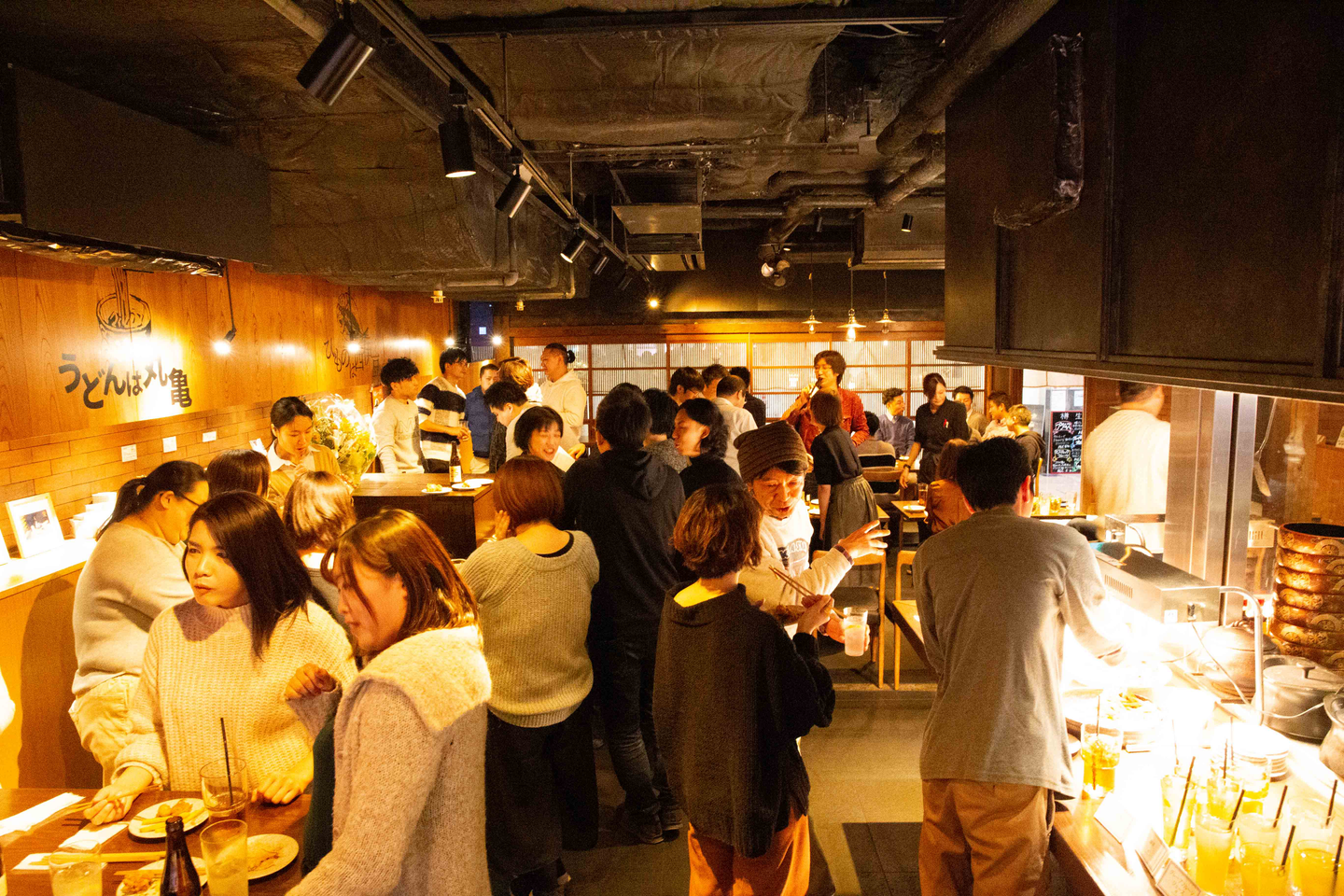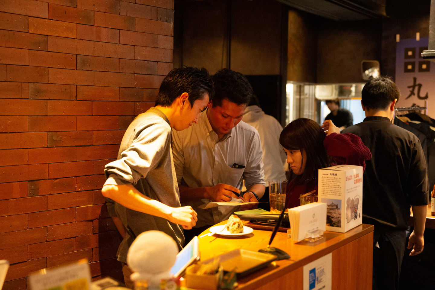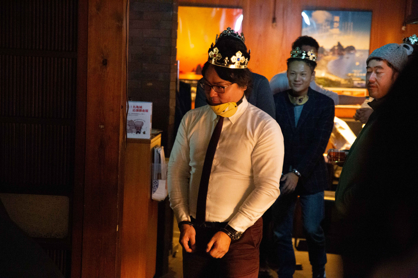 仕事が終わって、忘年会会場に集まるメンバーたち。
