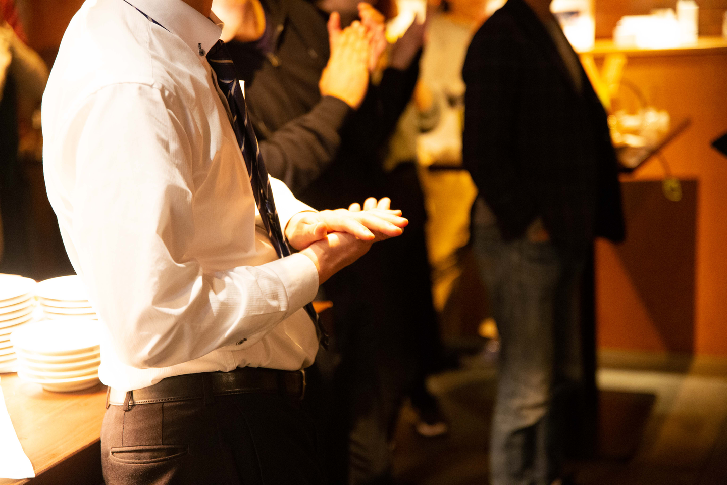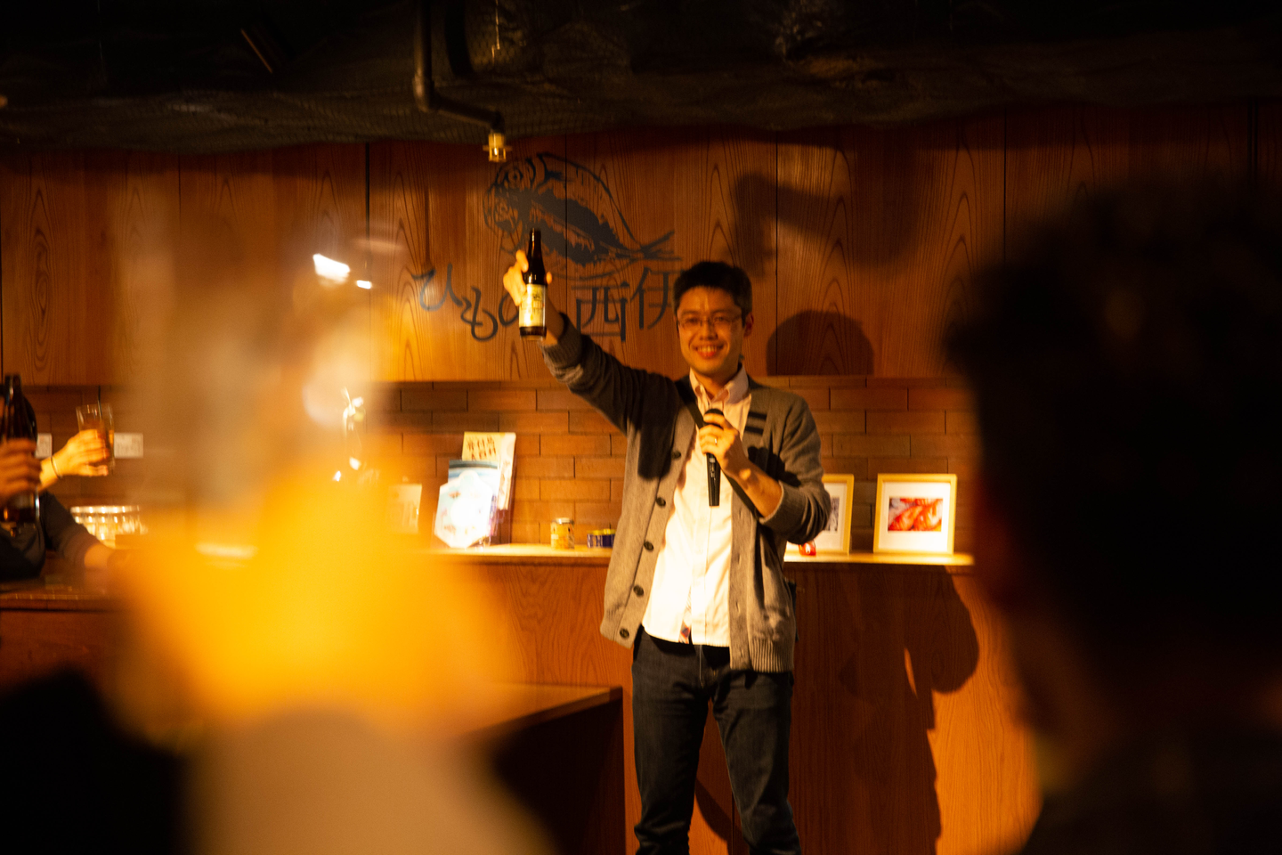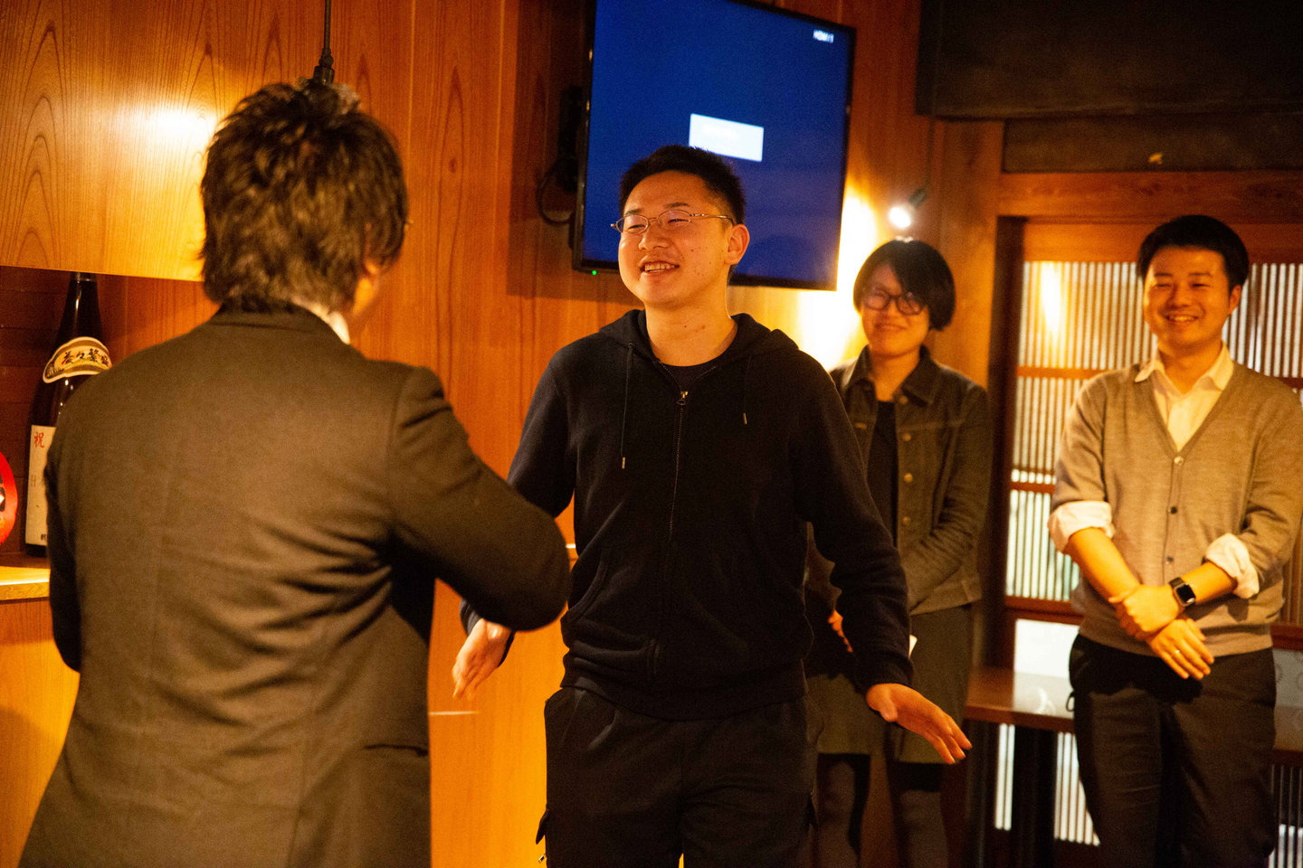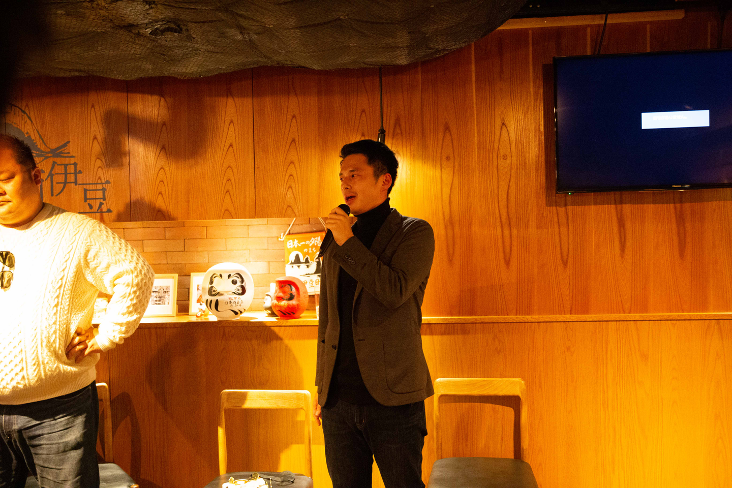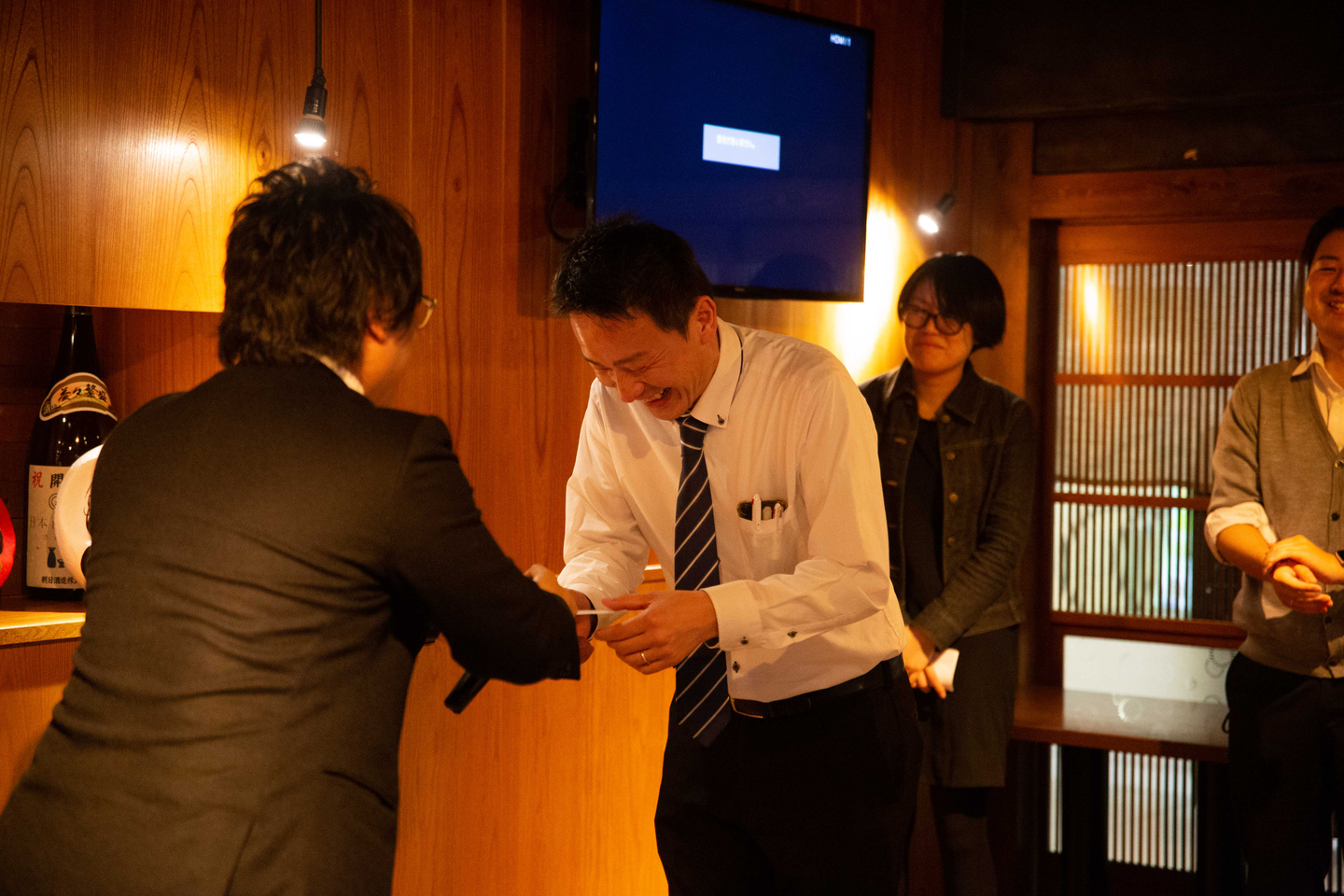そろそろ宴もたけなわ、クリエイティブ事業部長の締めのひとことのあとは…。