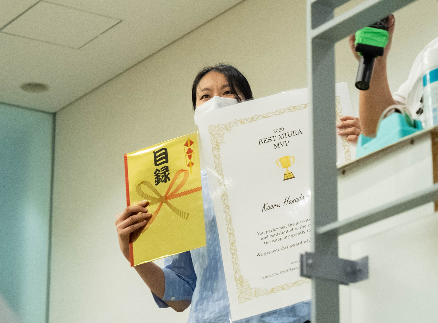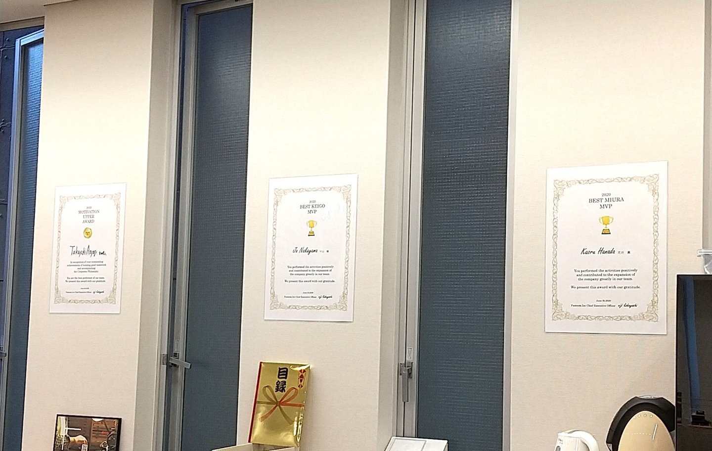 (表彰状は本社の壁に掲示し、来年の表彰まで1年間、称えられます)
