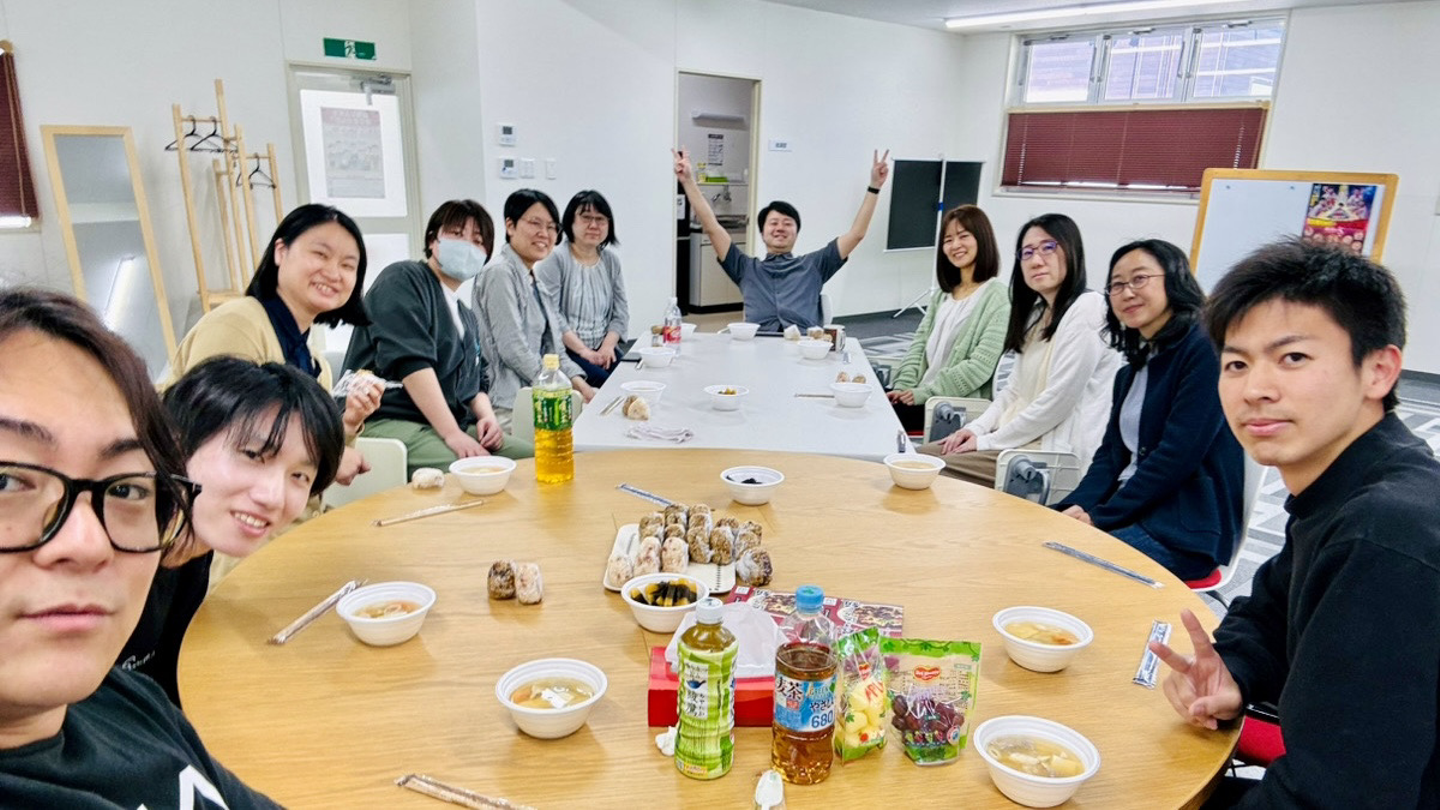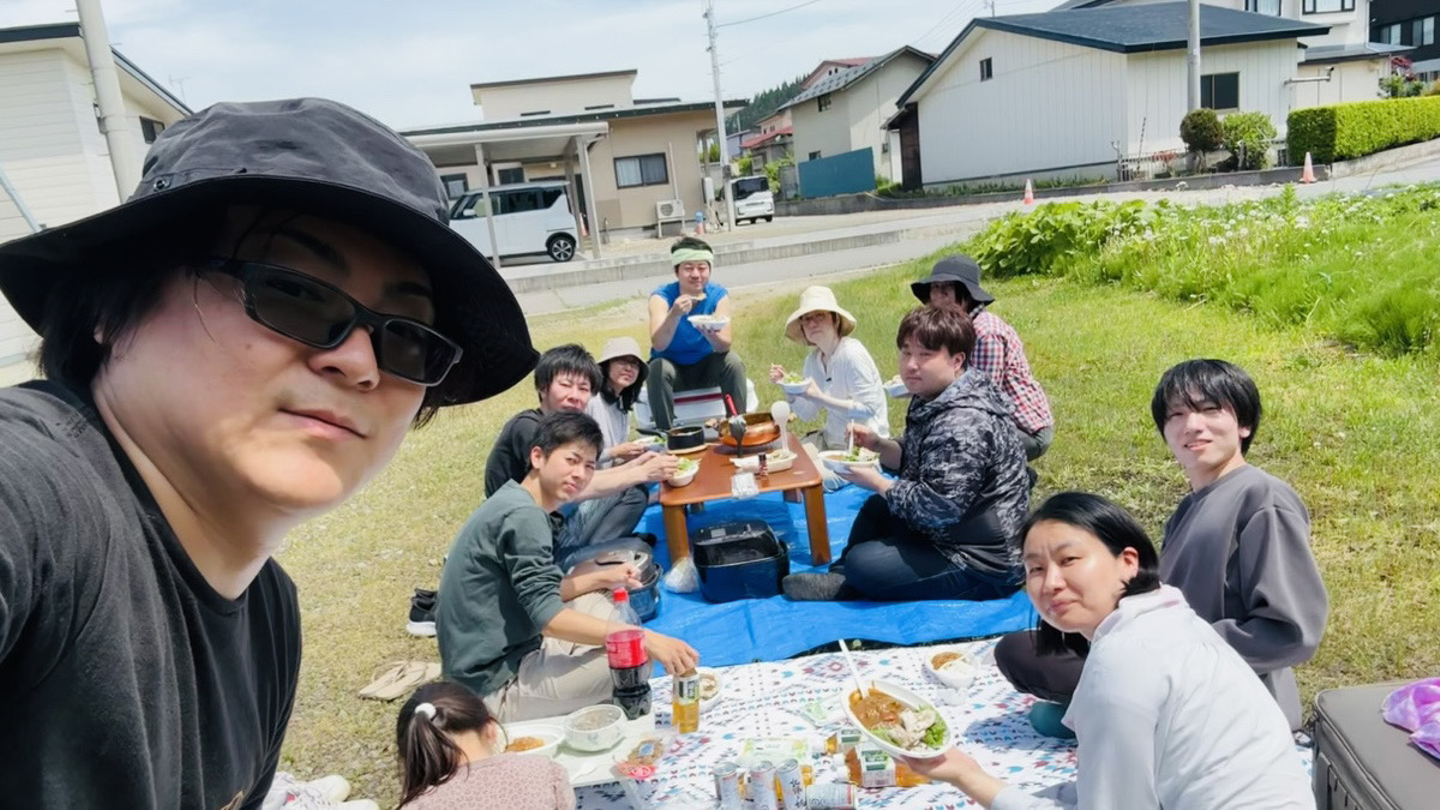今回は、コロナ明けで久々の開催という事もあり、この数年で新しく加わったメンバーも参加。前日には、各オフィスのメンバー同士での交流も行い、お昼には料理部長H氏による、日本橋今半の炊き込みおにぎり&豚汁ランチ会と、夜には地元の八幡平ポークとアグー豚のしゃぶしゃぶで味比べ会を実施。