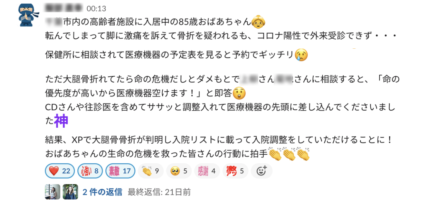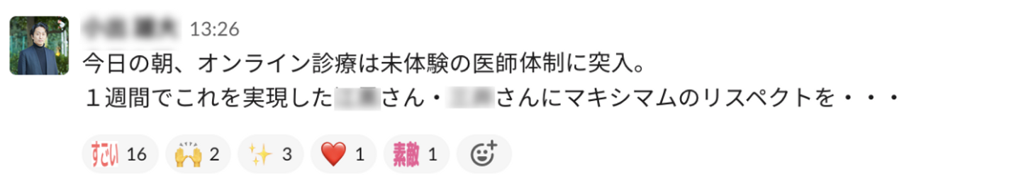 この投稿は、突然の需要増に即応して医師起用に奔走し、過去最多の医師数を確保した[ リソース管理 ]、それに並走し、研修から現場デビューまでを地道に導き続けた[ オンライン診療 ]の両チームに贈られた、短くも力強い感嘆でした。