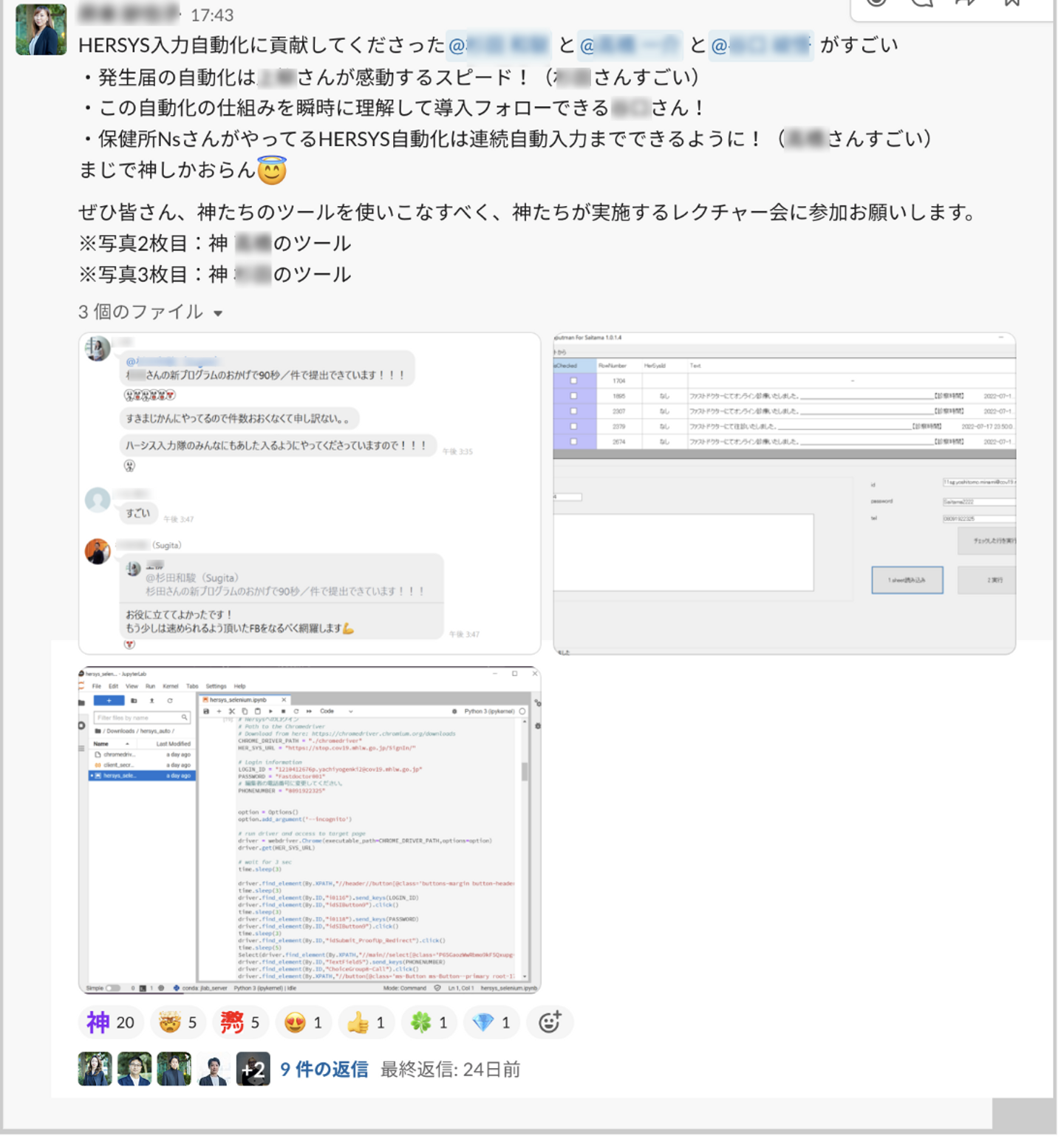 そしてこのエピソードの注目ポイントは、開発メンバー3名が新入社員であったということです。入社して2ヶ月足らずで第7波の混乱に巻き込まれながらも、即戦力として現場改善に貢献したことは、投稿者である[ DX推進チーム ]からの最大の賛辞だったと思います。
