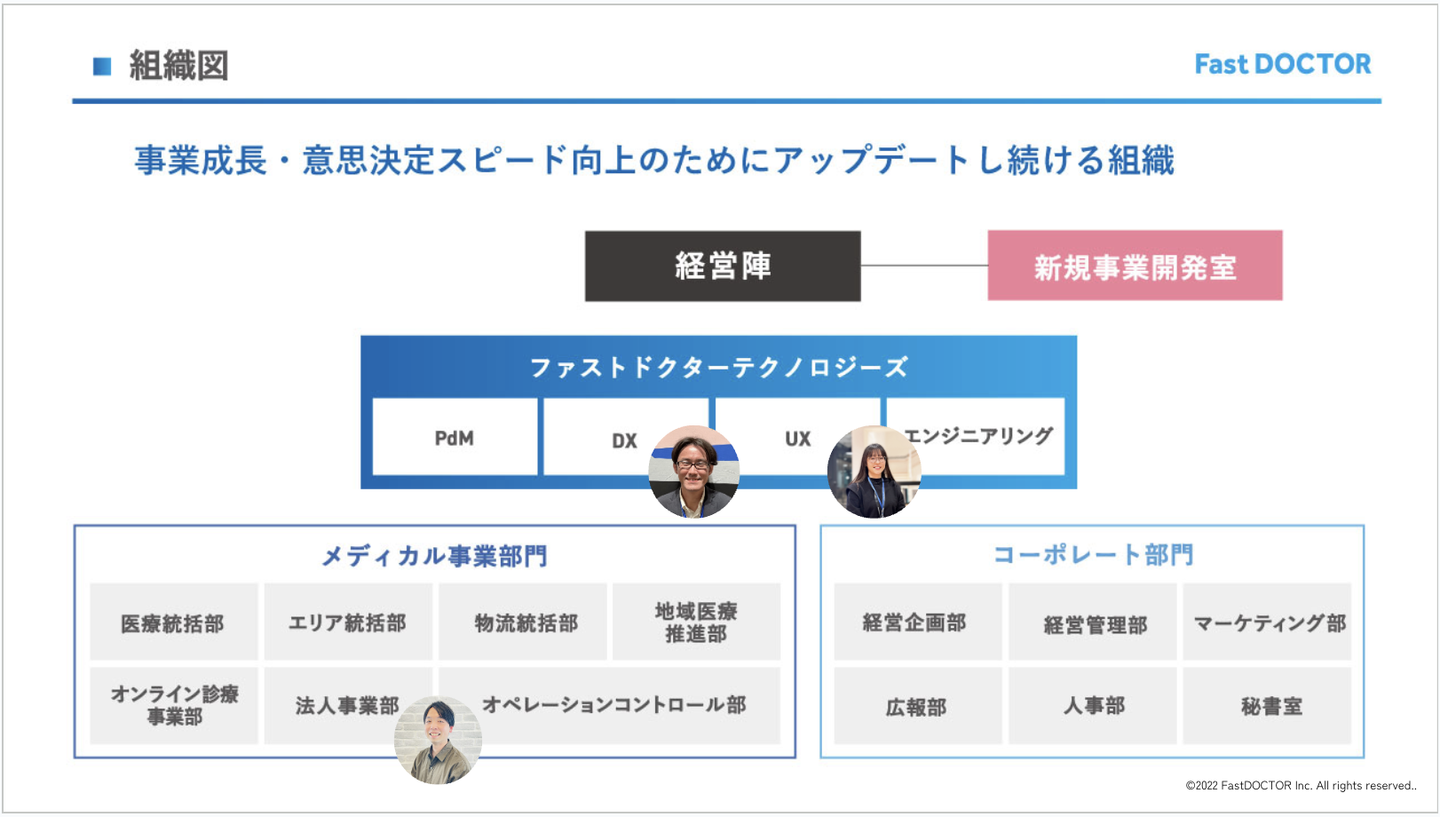 これはスタートアップだからこそのスピード感であると思っていて、経営陣も含めて意思決定が早いように感じています。また、サプライチェーンが長いファストドクターのサービスにおいて部署間の繋がりはマストであるため、風通しの良い社風が築かれていたりお互いを尊重し、褒め合う文化があることも起因しているように感じています。