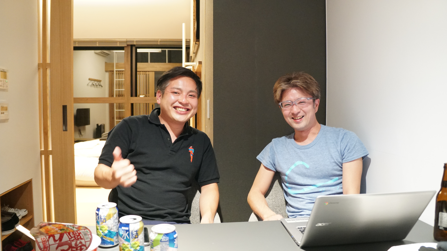(favyを代表する酒好きな2名 左:前田、右:米山)