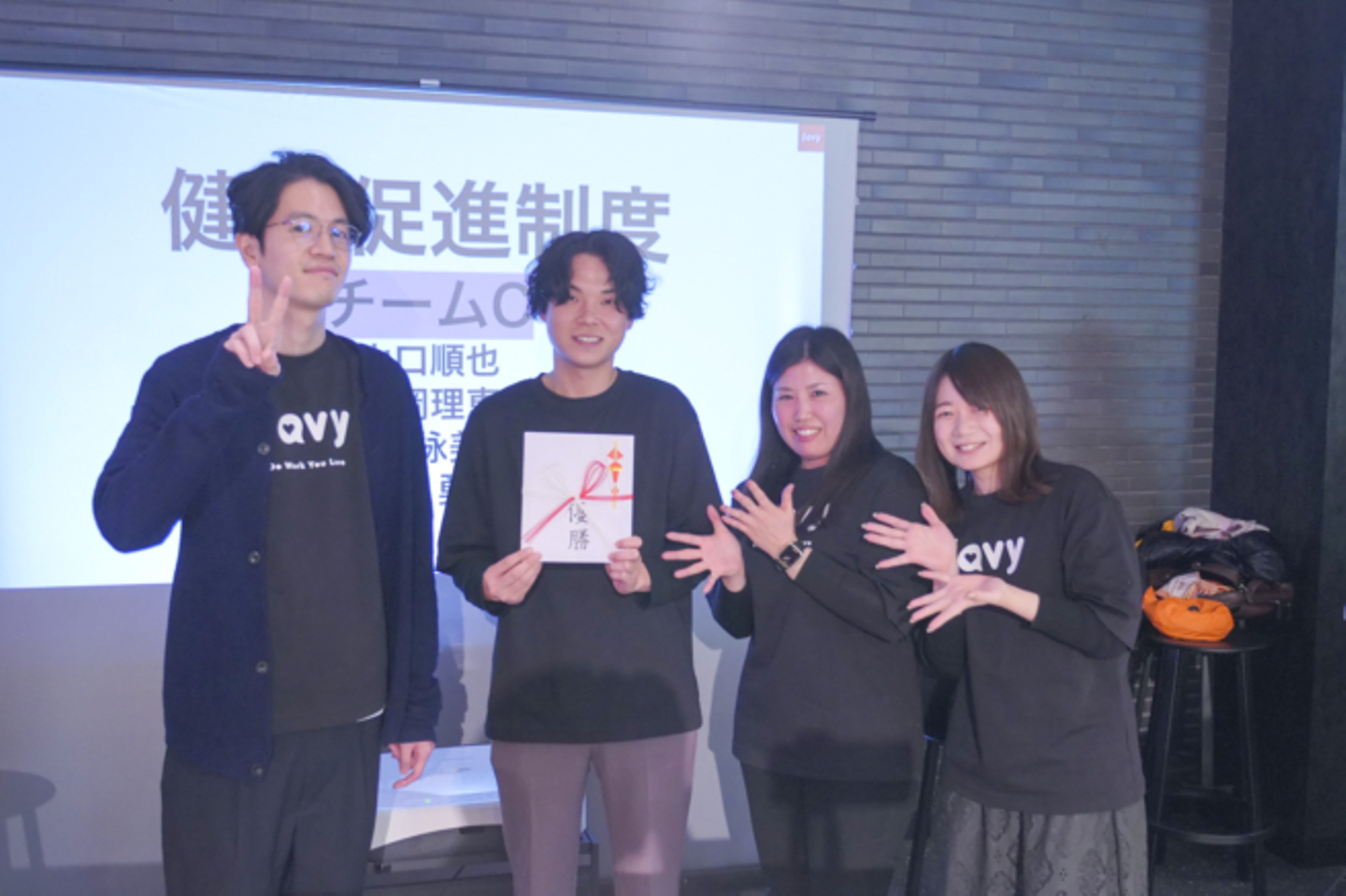 優勝したのは、スポーツを通じた健康促進の福利厚生施策を提案したチーム。