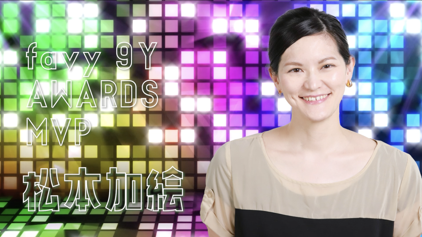 9Y MVPに選んでいただき大変光栄です!!受賞発表の時に思わず「やった〜!!」と叫んでバンザイしてしまいました。大人になってこんなに素直に喜べることがあるなんて!