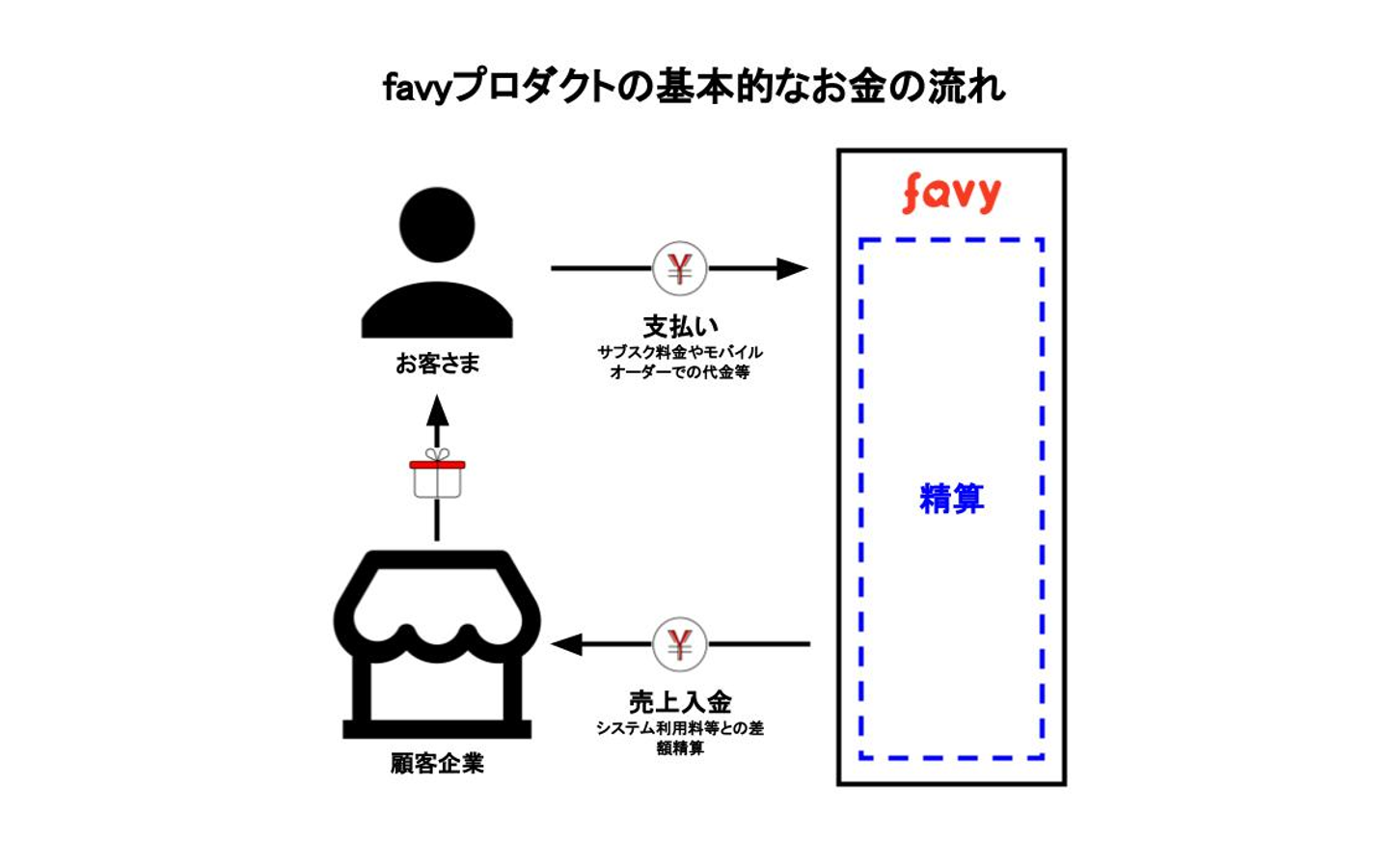 まずは、利用店舗の売り上げを一度全てfavyが預かります。