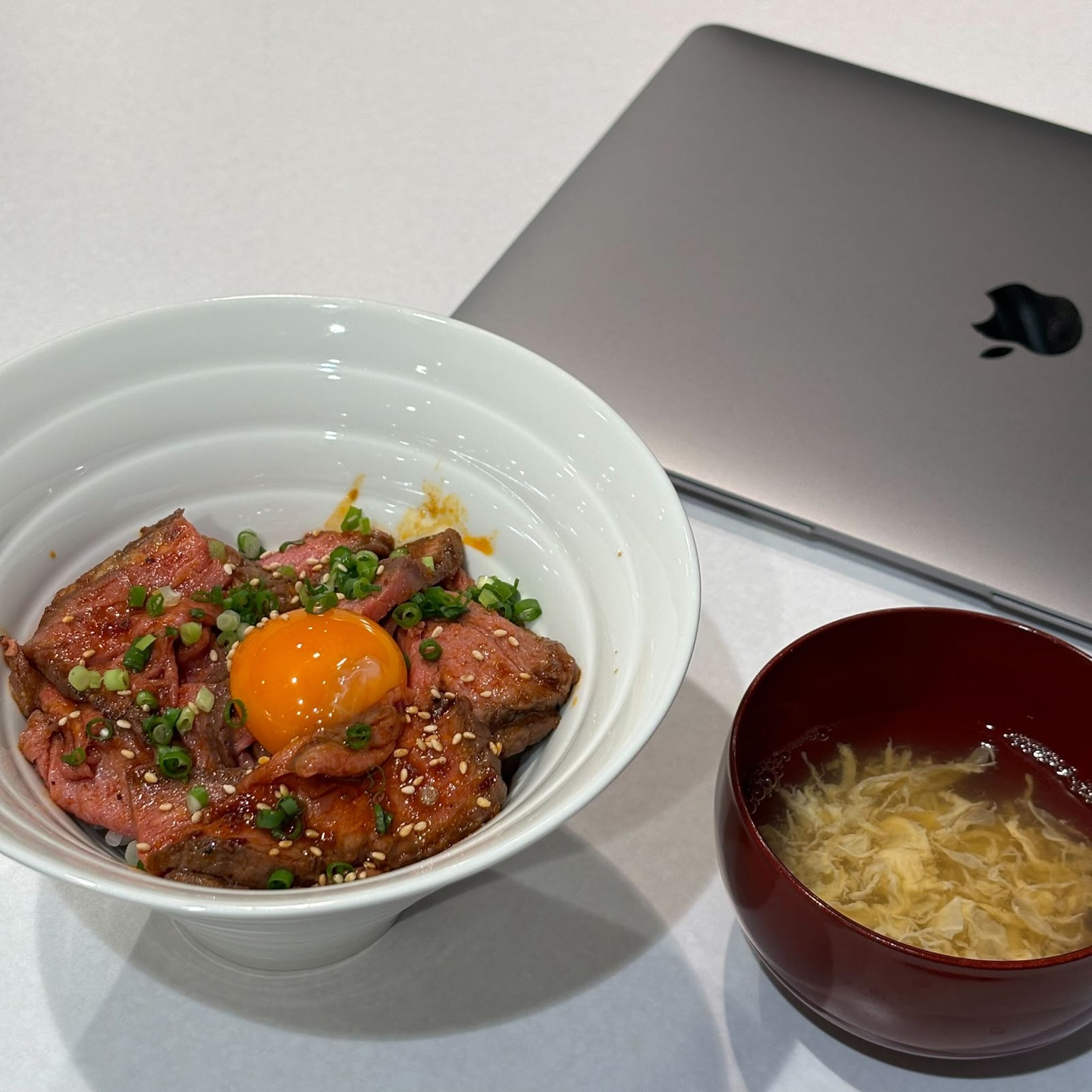 私の一押しメニューは、ラー油香るローストビーフ丼。