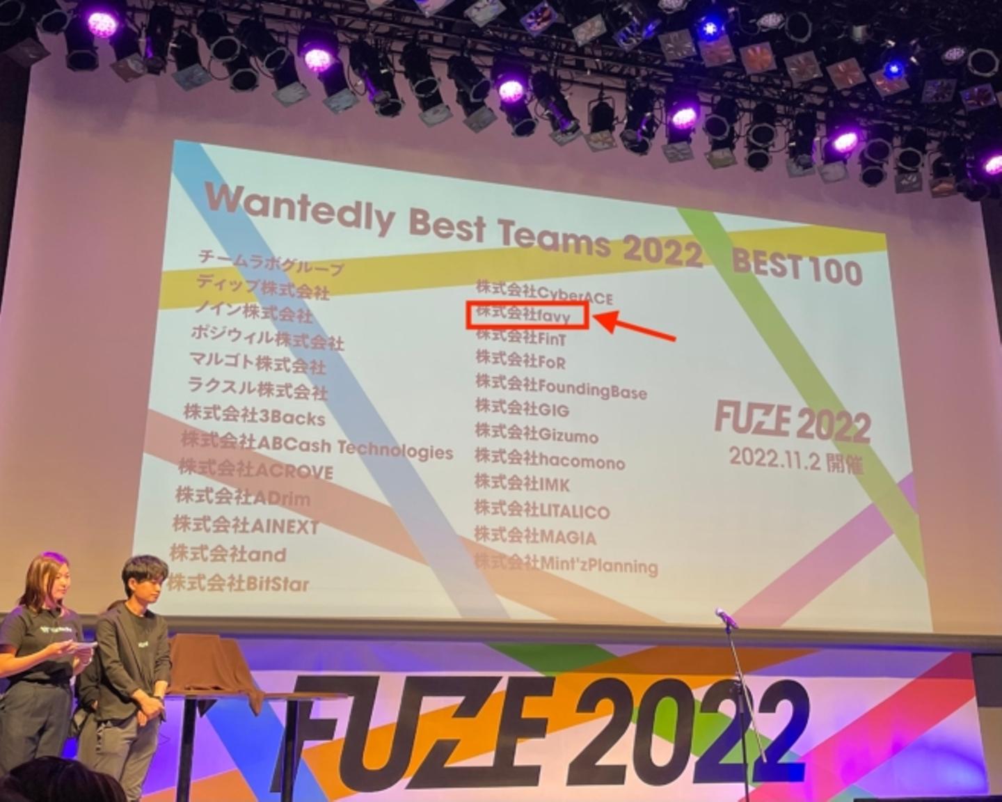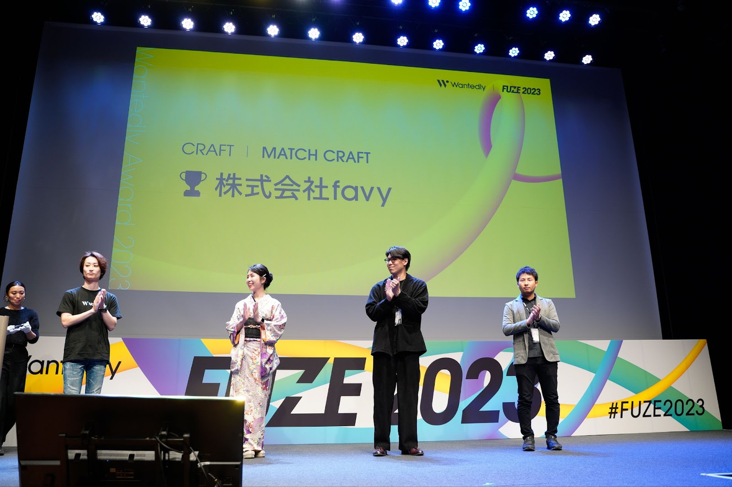 この年はfavyが、数年間落ち着かせていた採用活動を、再び積極的に活動するようになった年です。大きなステージのスクリーンで社名が表示されて感動的でした!