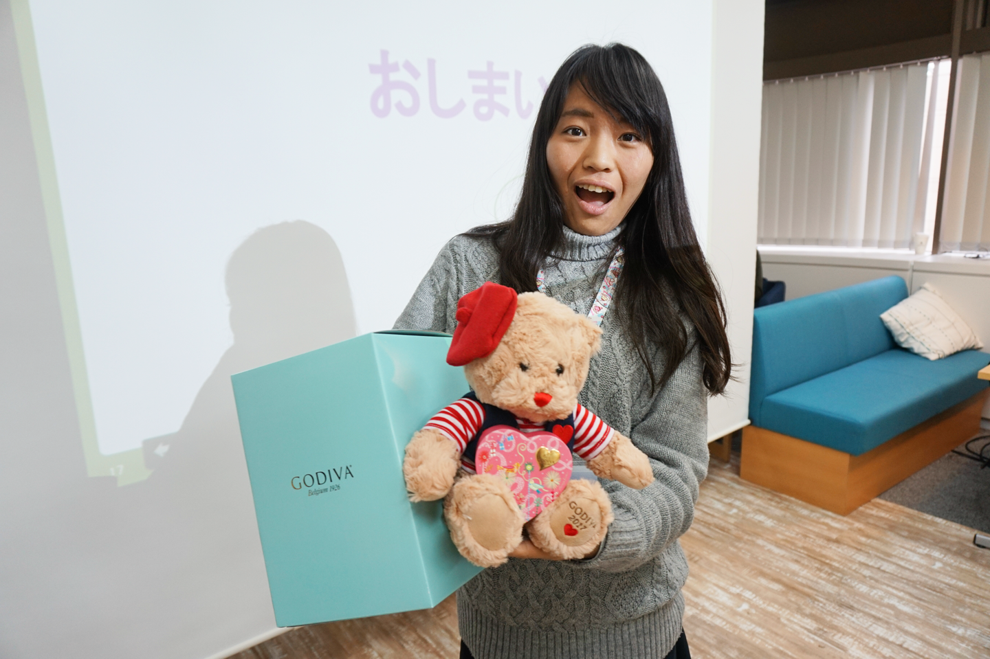 見事、FF女子力No.1に決定したのは、宮崎さん!なんと2年連続で第1位に輝きました!GODIVAのぬいぐるみ付チョコレートが贈呈されました♡