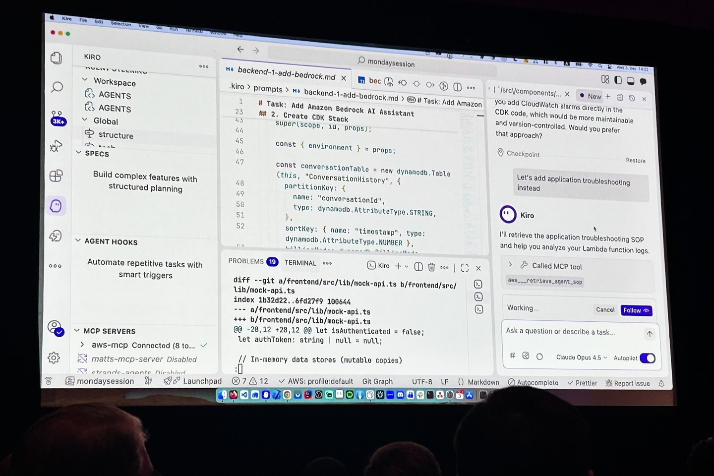 また、最も印象的だった技術はAgentic AI IDE(統合開発環境)のKiroです。
